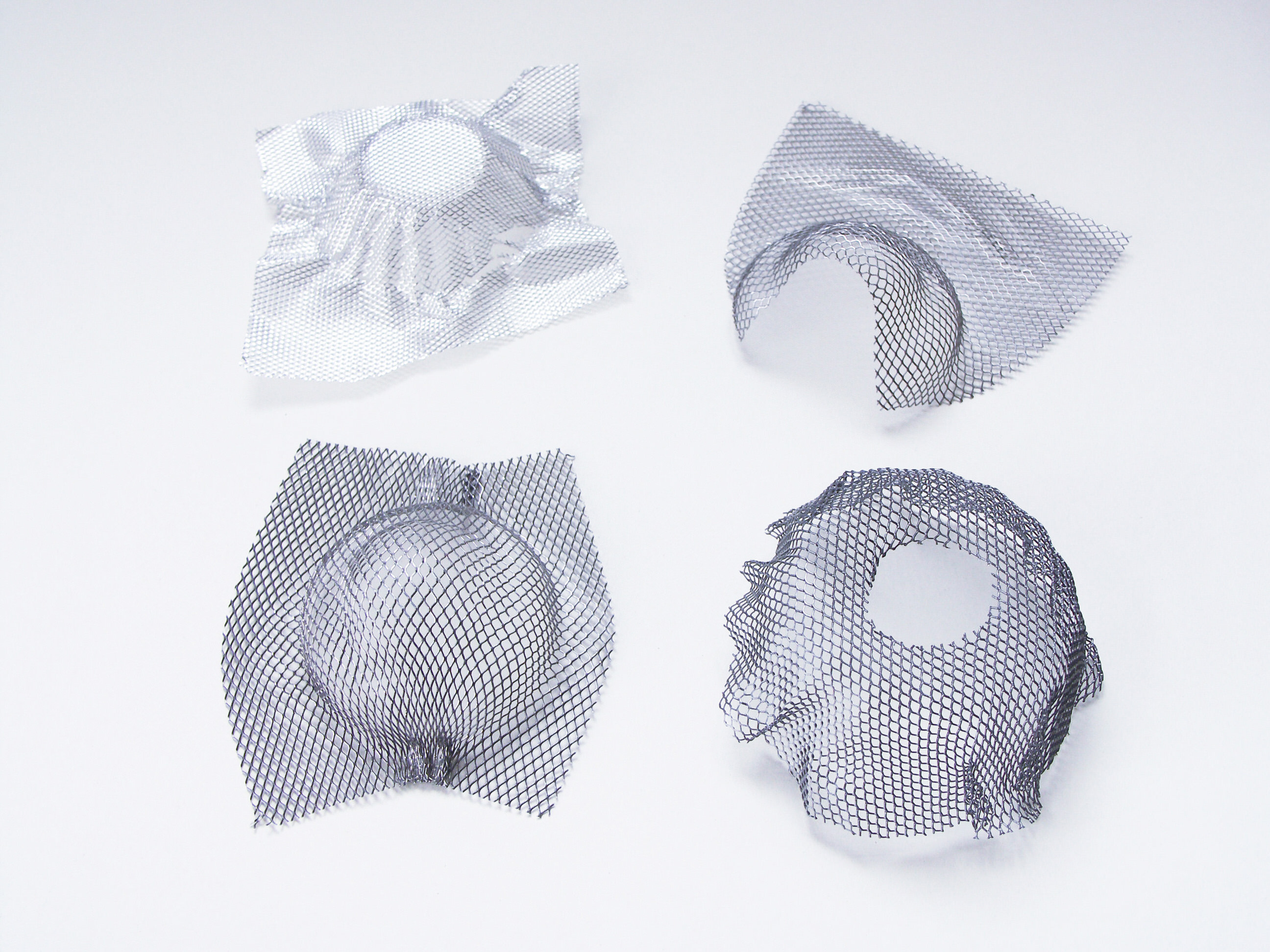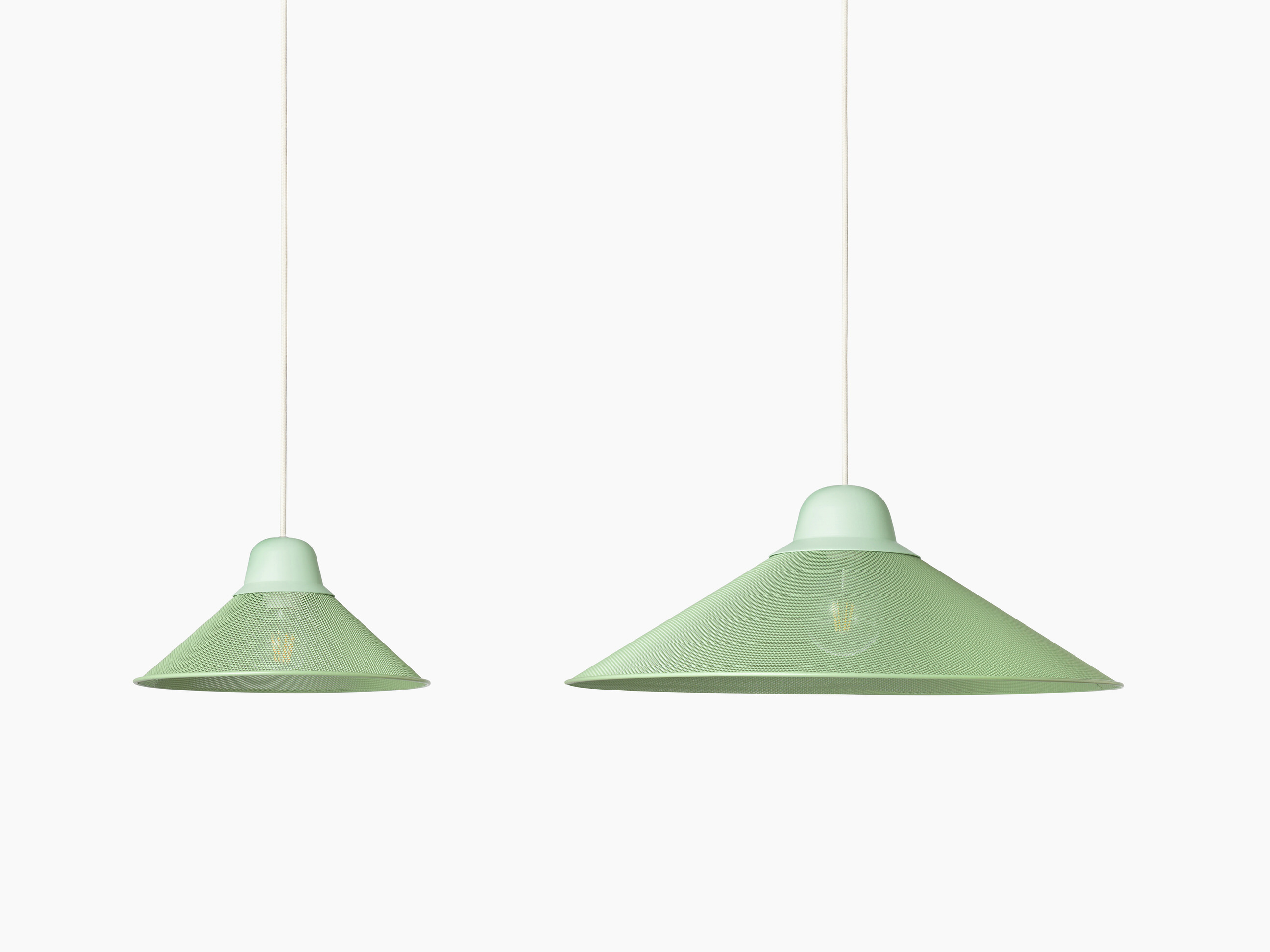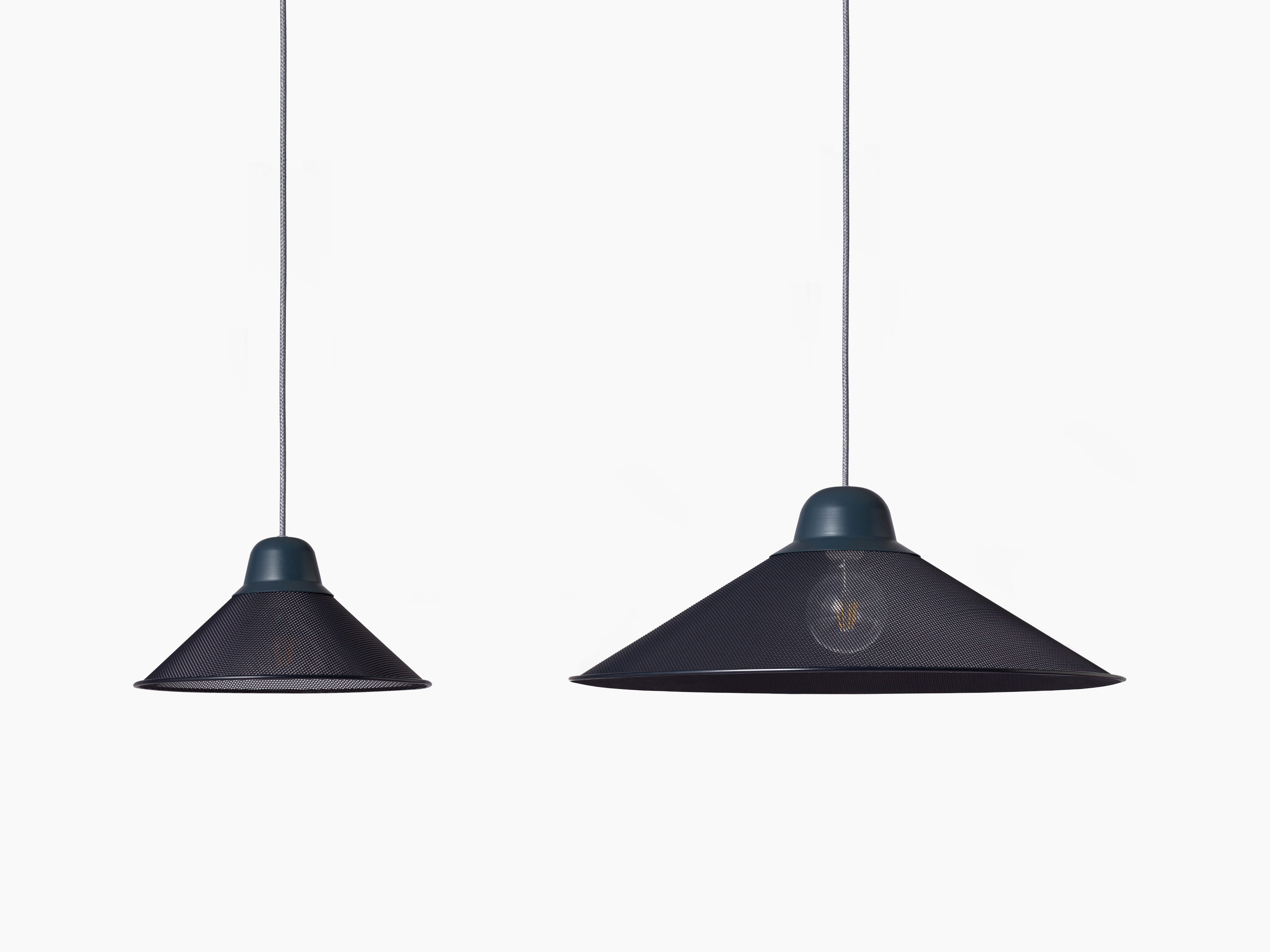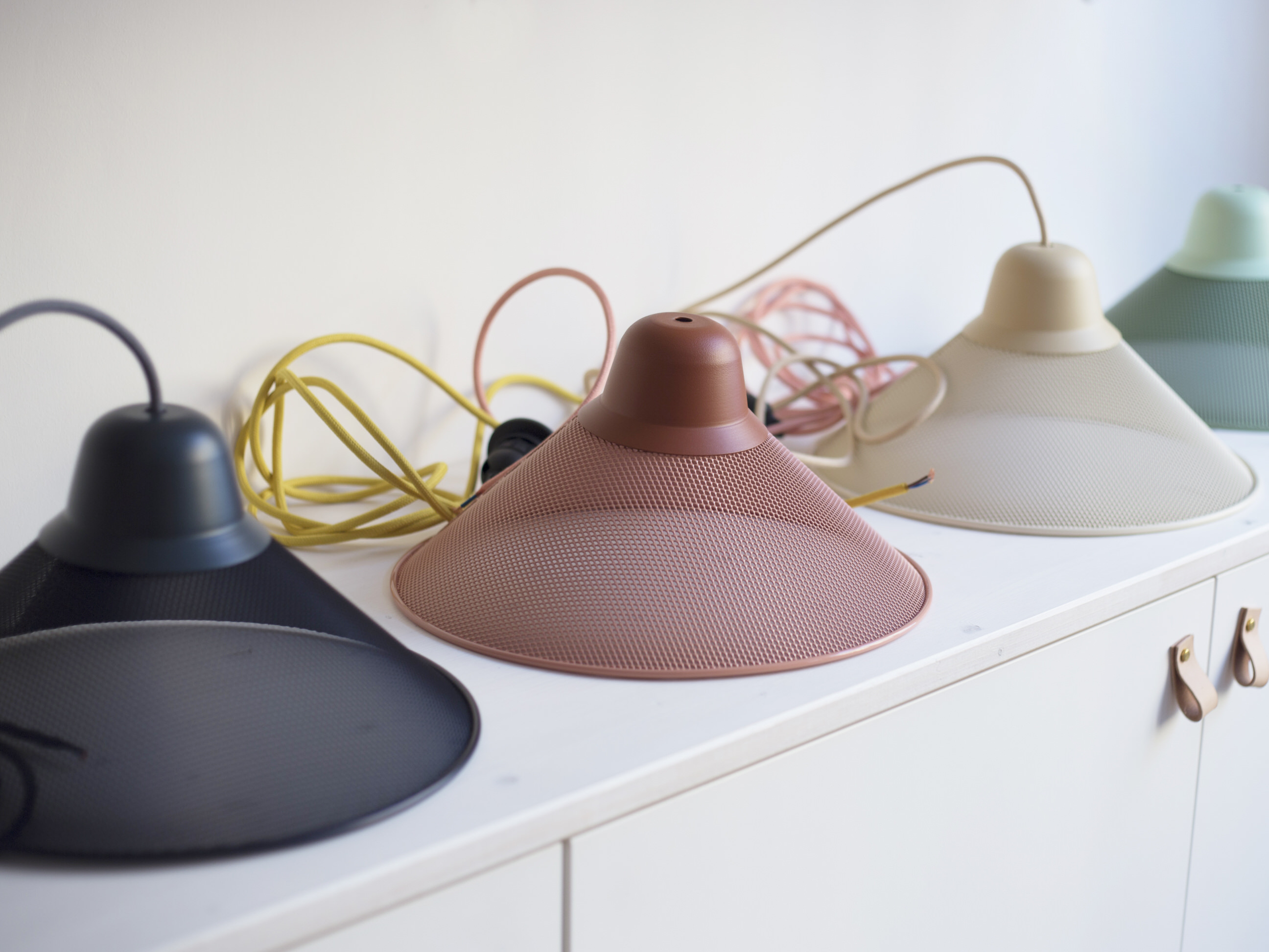 → All ProjectsRange of lamps made of expended metal mesh. Usually used to produce office accessories, this refined & graphical material fit perfectly to diffuse the light. Like a piece of lace, this thin metal mesh dresses the bulb in a delicate way to provide a soft light with mellow shadows on the walls.