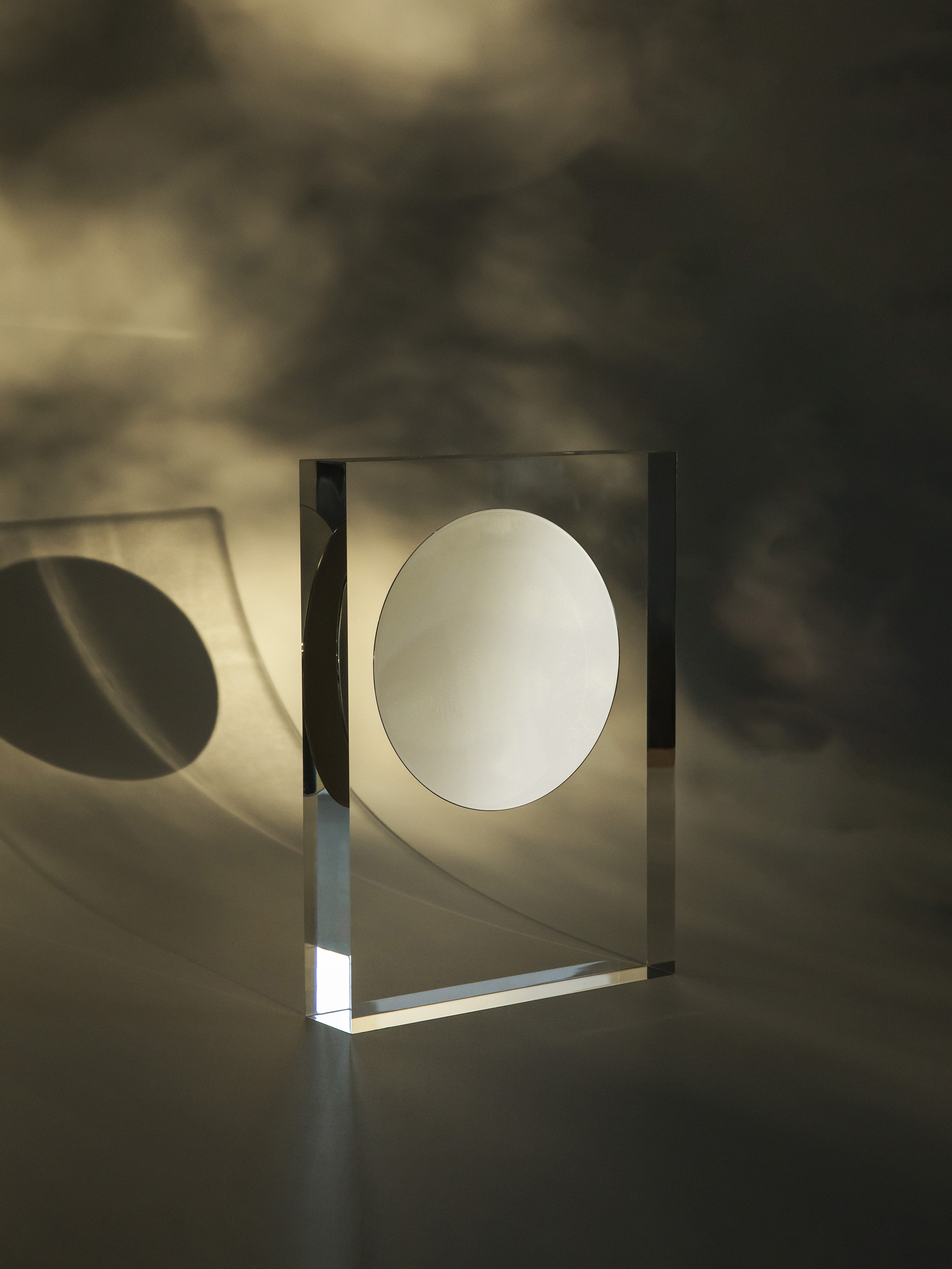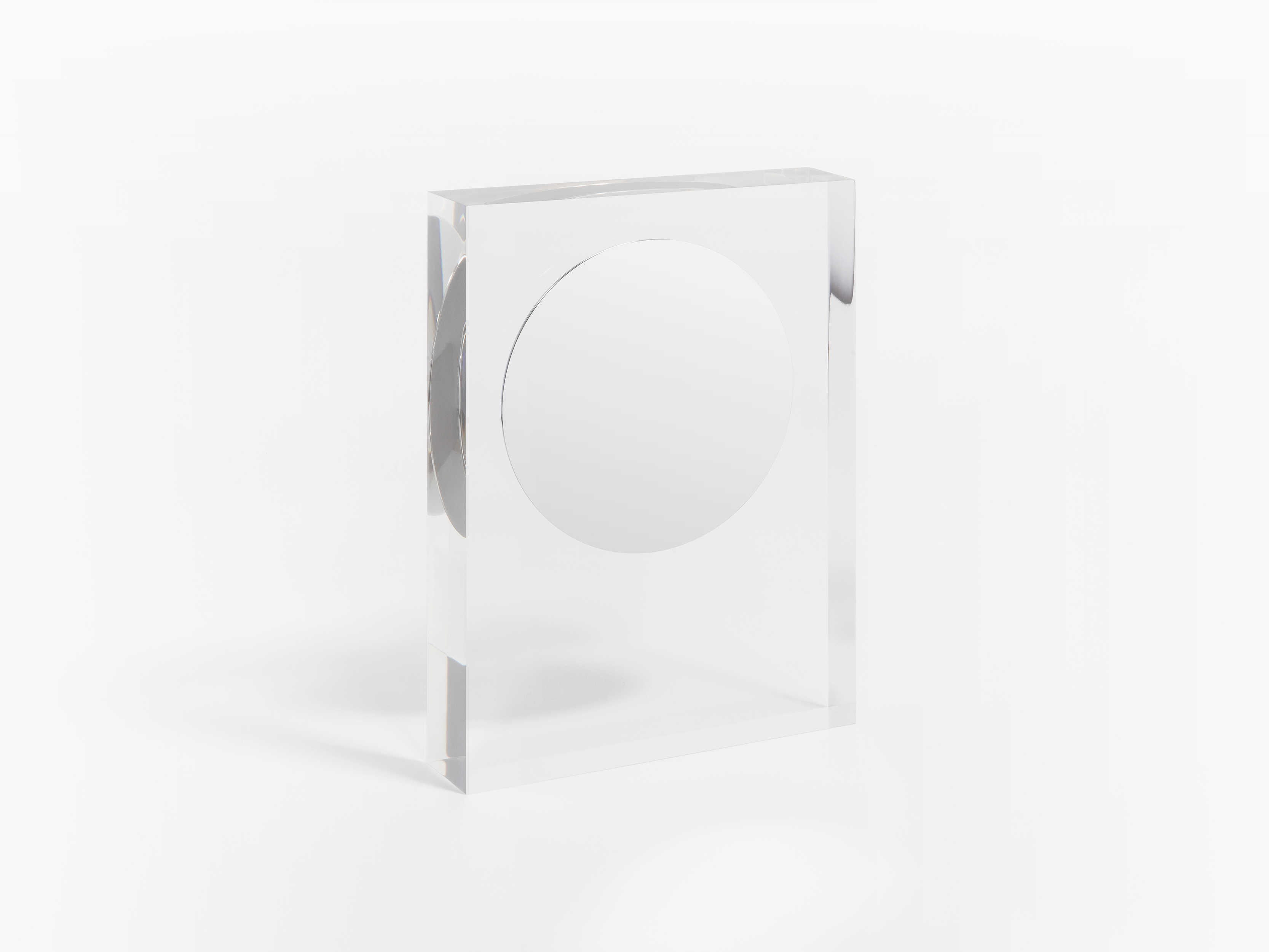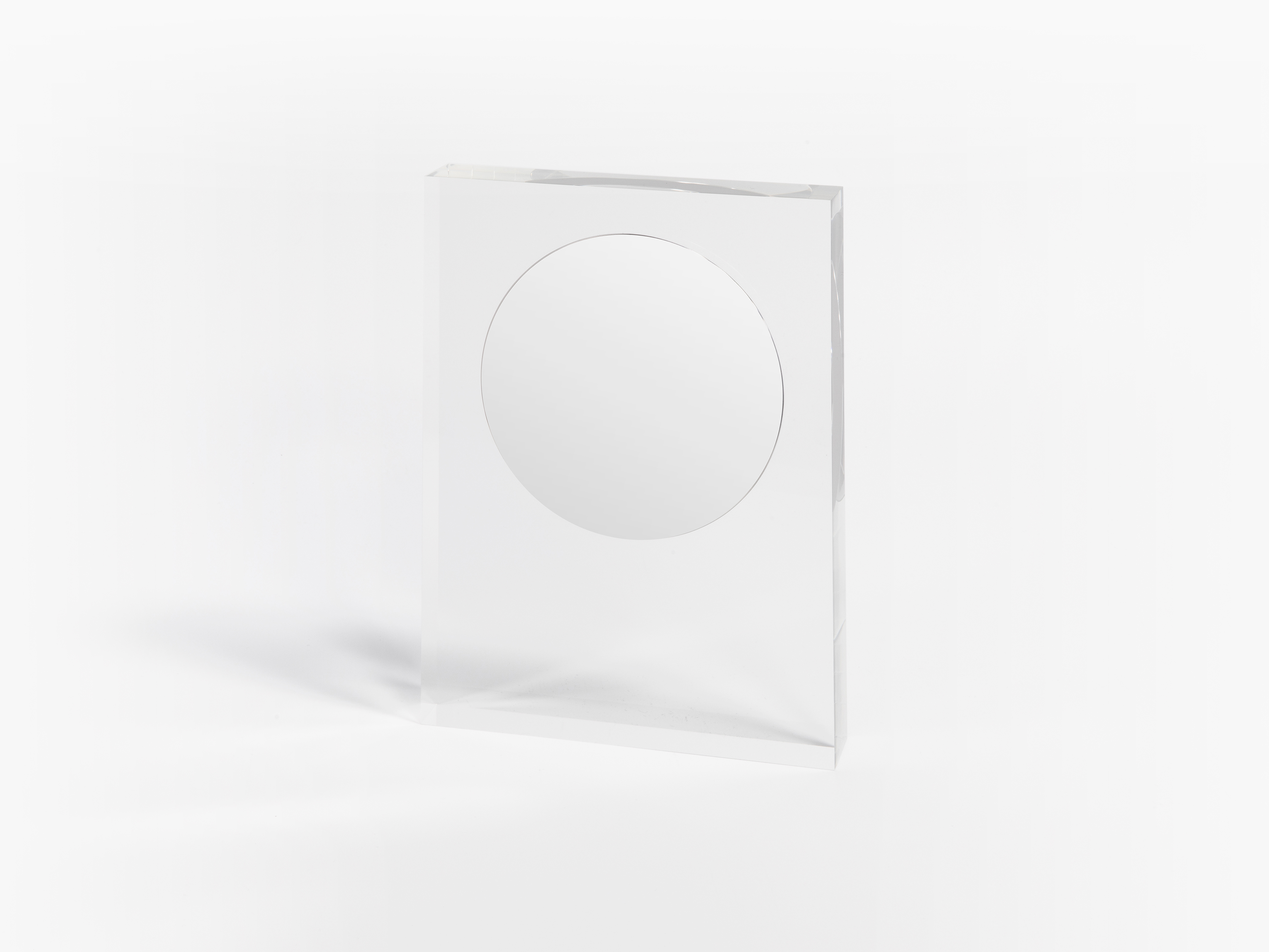 Full Moon → All Projects 1 / 5 Zoom Full moon is a concept of a table mirror. A mirror polished metallic circle is frozen in a bloc of transparent acrylic giving impression of rising like a moon in the sky. Prototype casted by rolfzweifel.ch. Project available for edition.