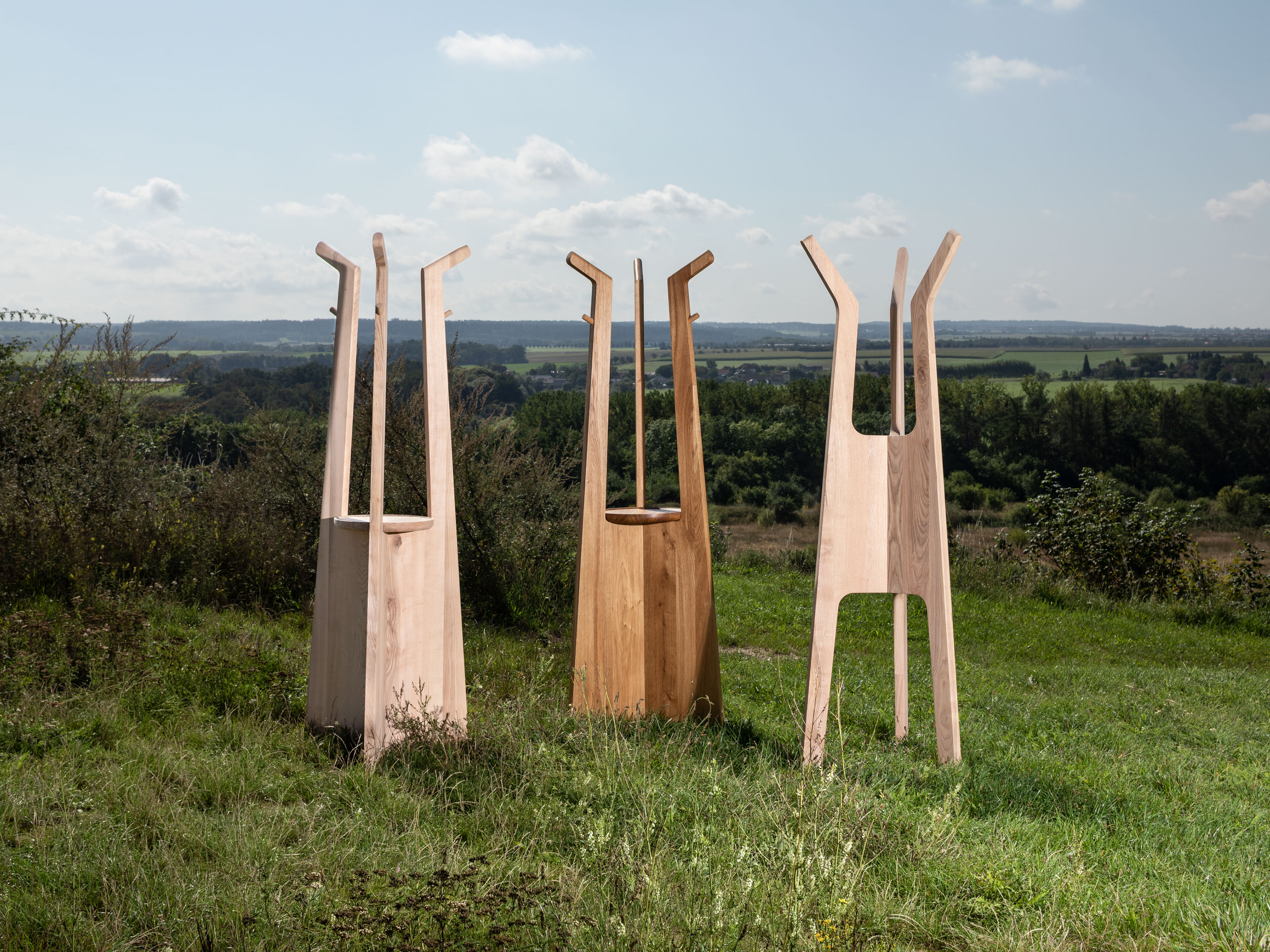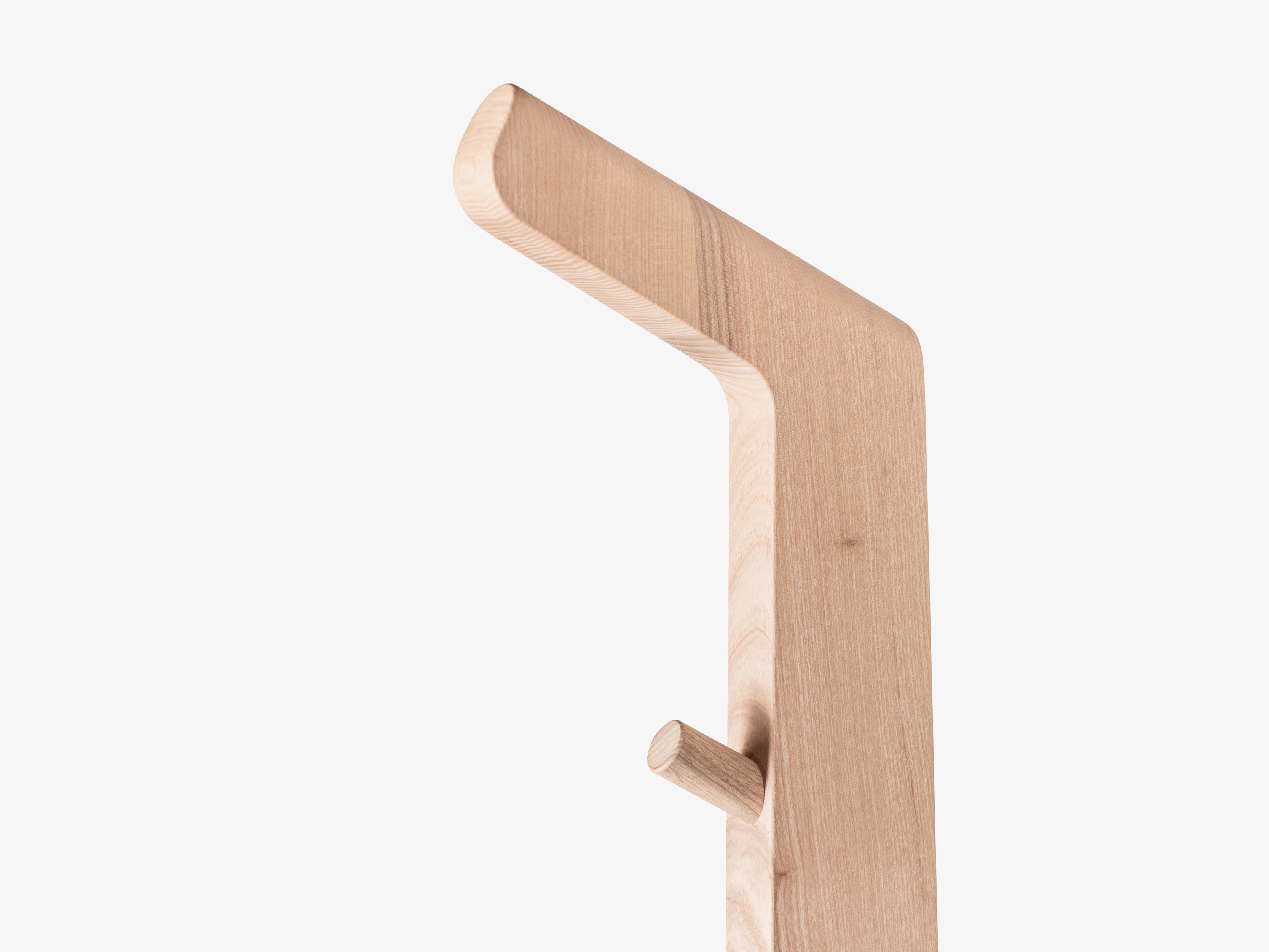 Hub → All Projects 1 / 4 Zoom A standing solid wood coat hanger with a central plate to put keys or gloves.