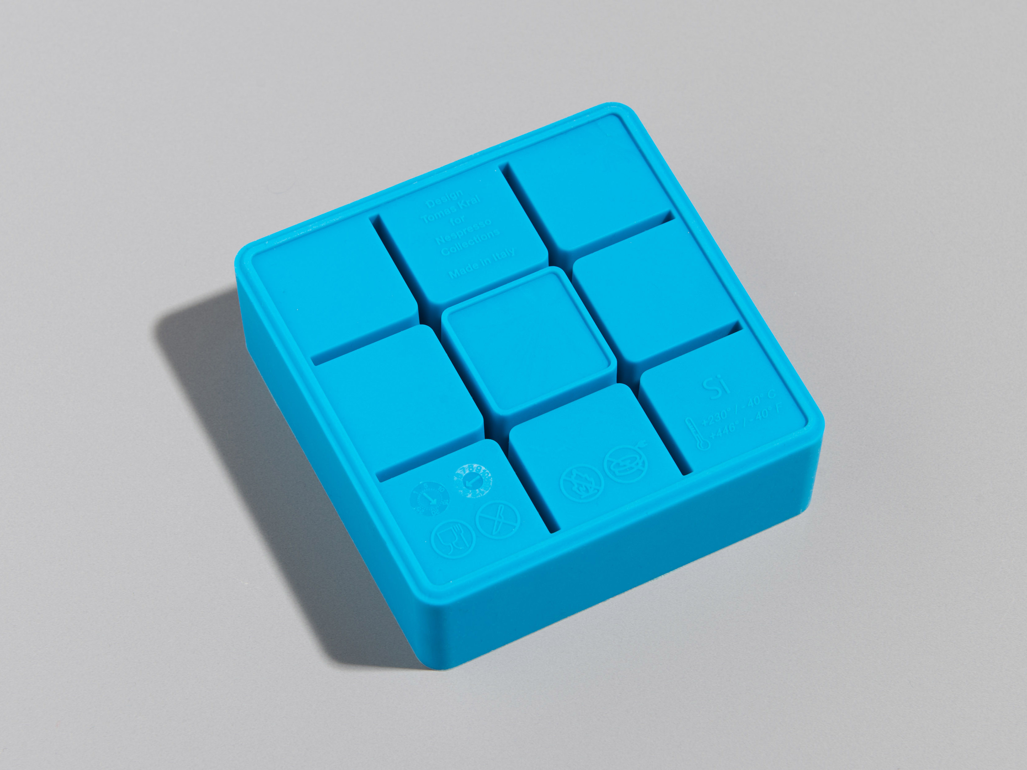 Ice cube tray → All Projects 1 / 9 Zoom Limited edition of the silicone Ice cube tray helping to prepare Nespresso Iced coffee. The bottom structure with the double-wall helps to easily unmold the ice cubes.