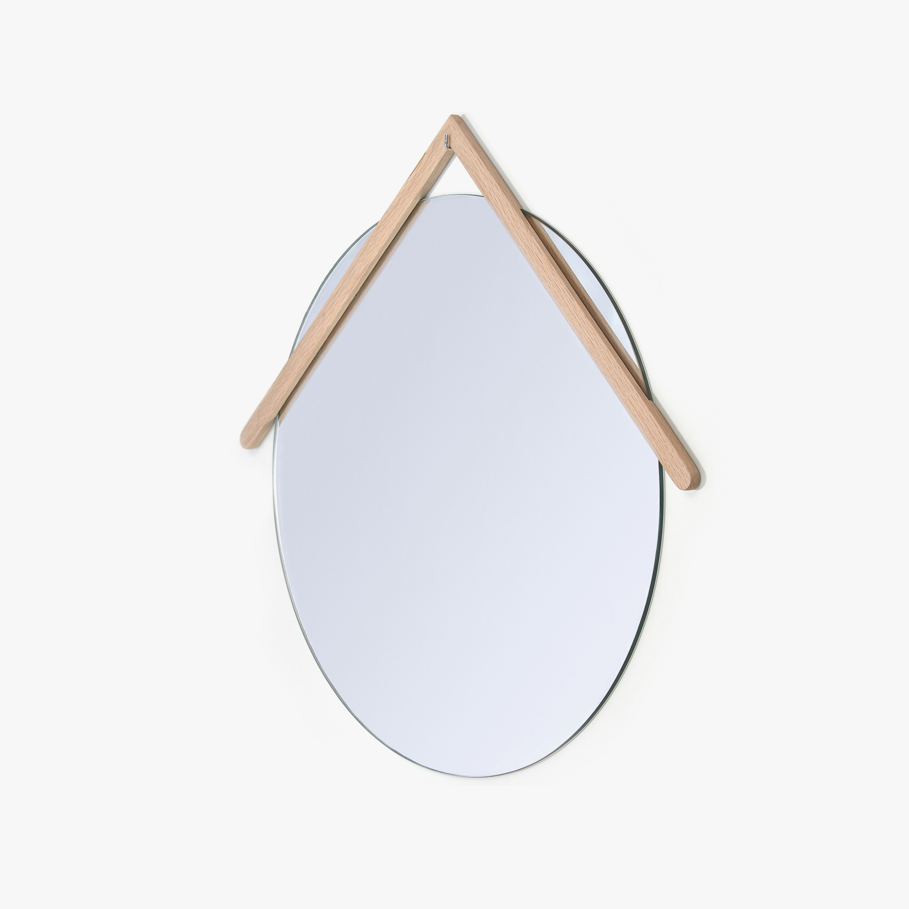 Lubin → All Projects 1 / 2 Zoom Is a wall mirror with a wooden roof. The “circumflex” enables its user to easily hang the mirror on the wall. This project was developed for the french product design edition company Hartô. Process