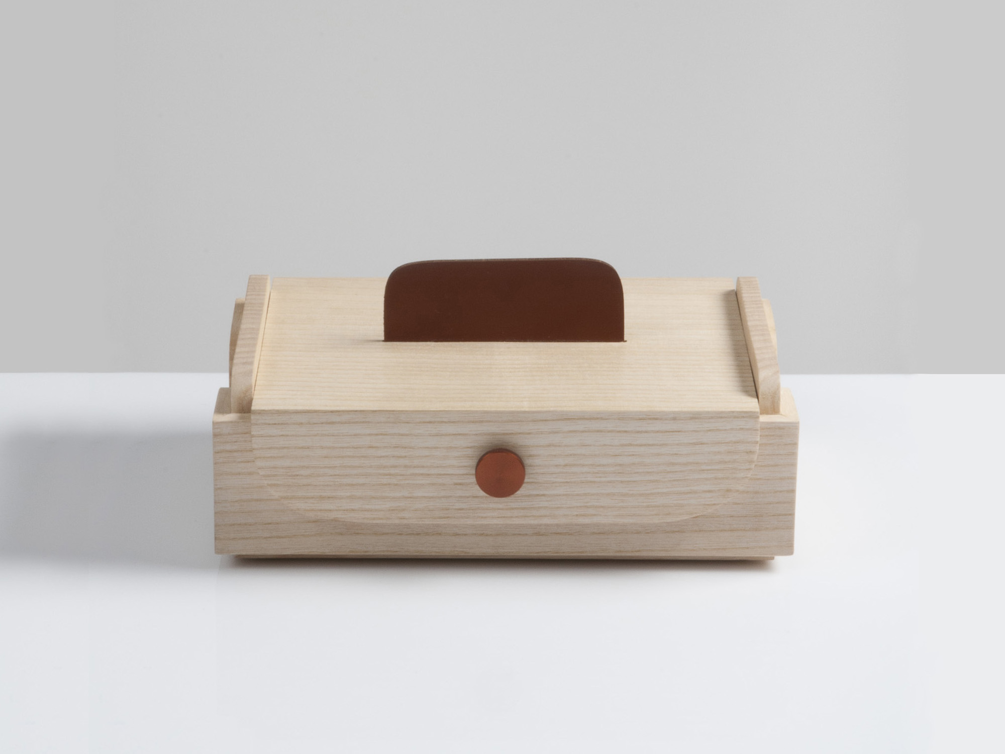 Lunch box → All Projects 1 / 3 Zoom Wooden lunchbox inspired by the classic bento box. This lunch box was designed for Wallpaper Handmade project. The choice of materials is appropriate to the office environment. Process