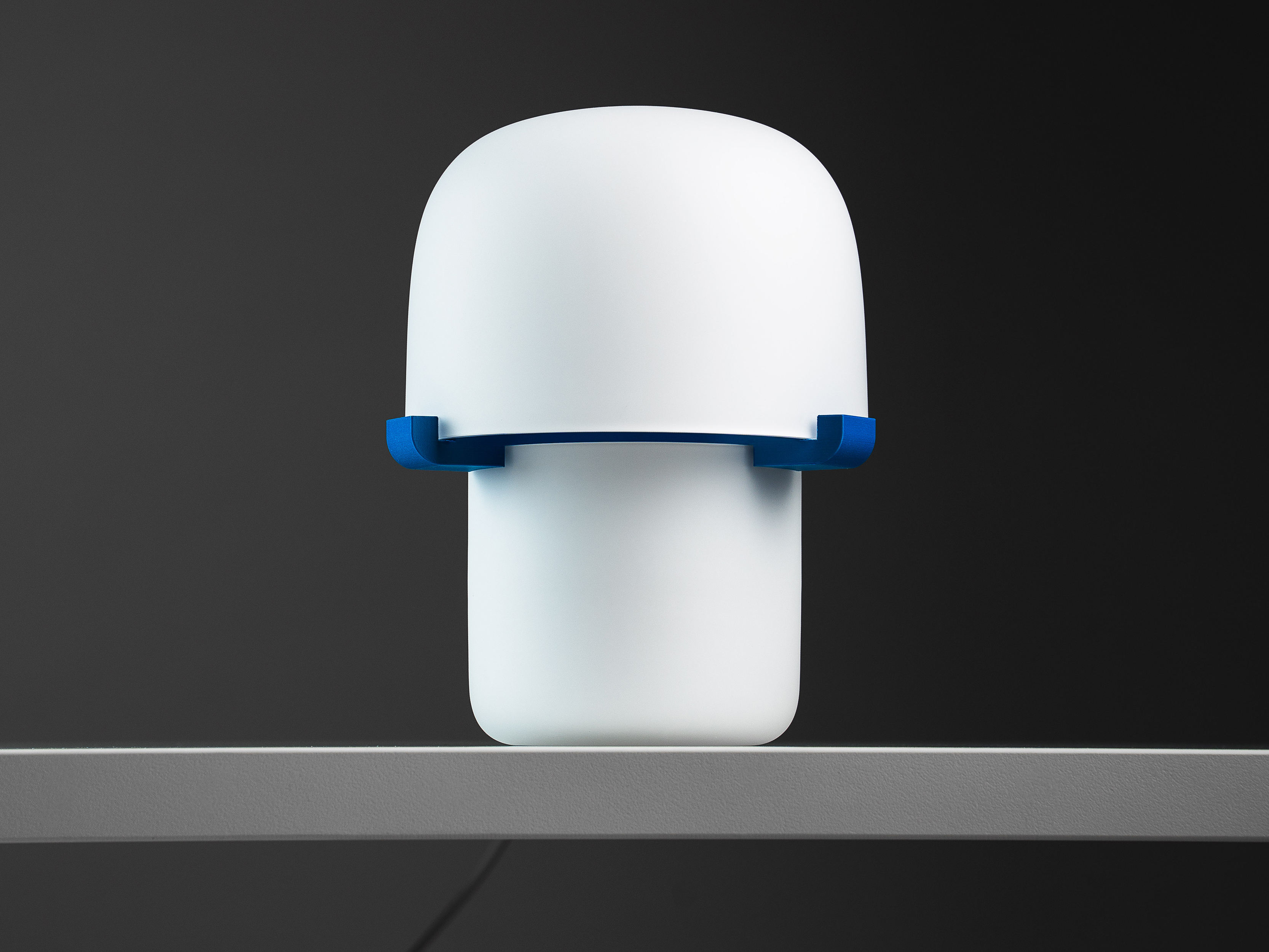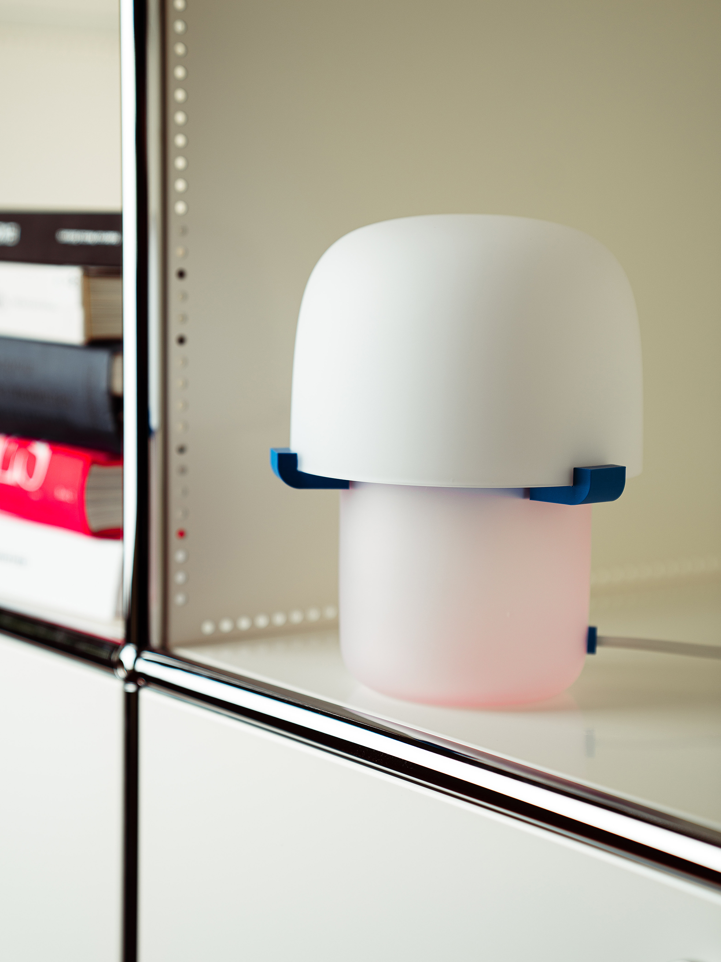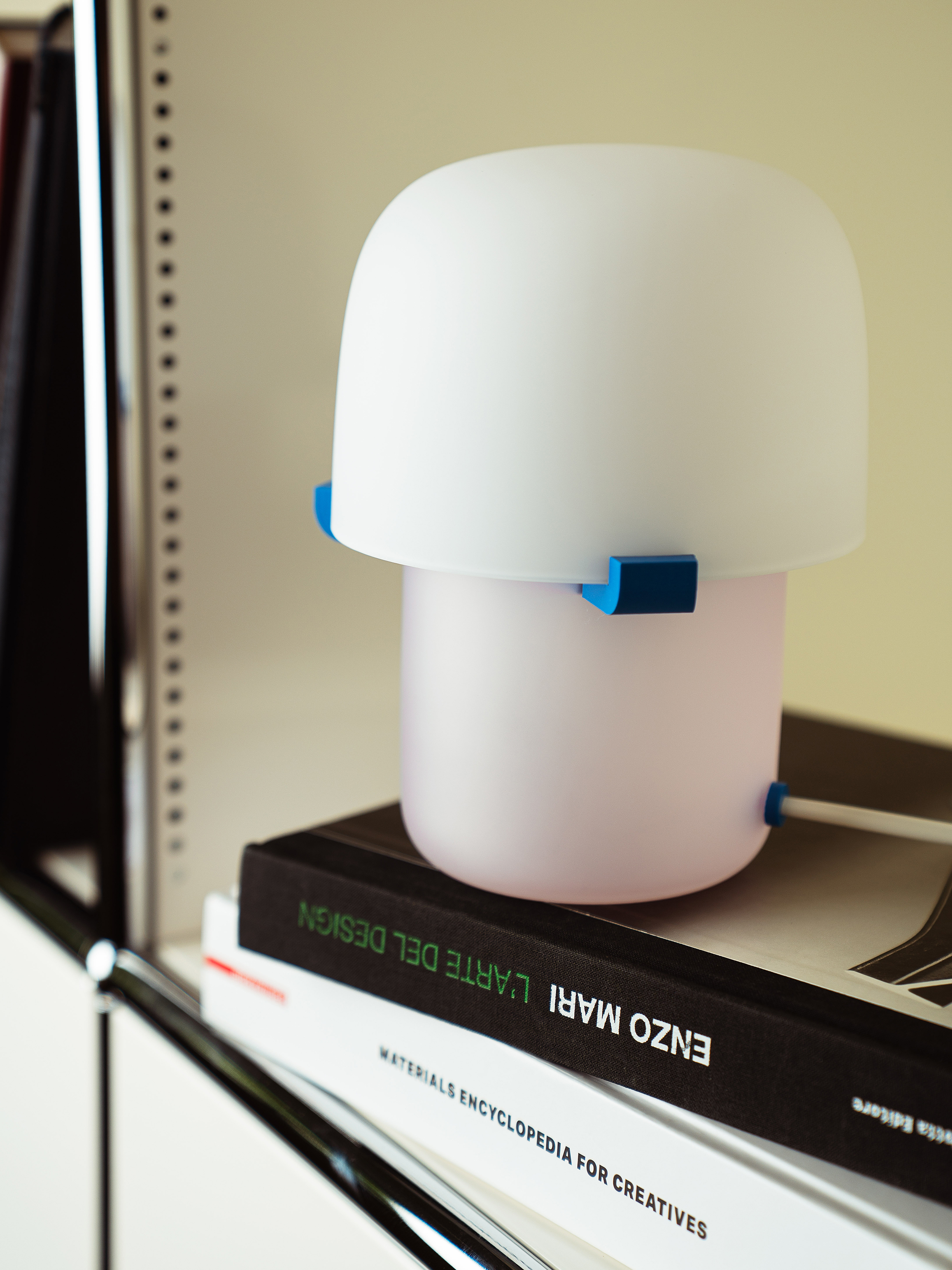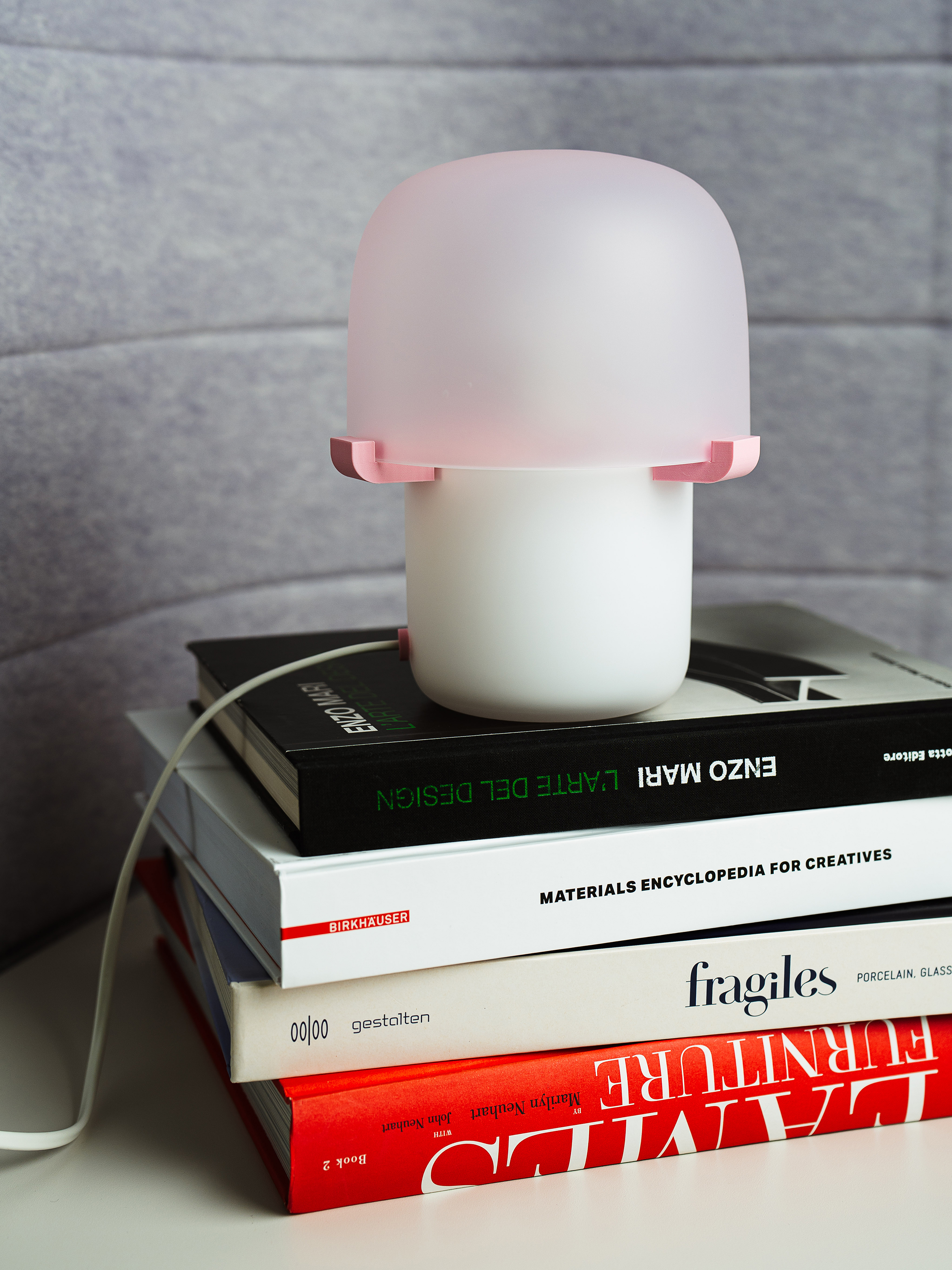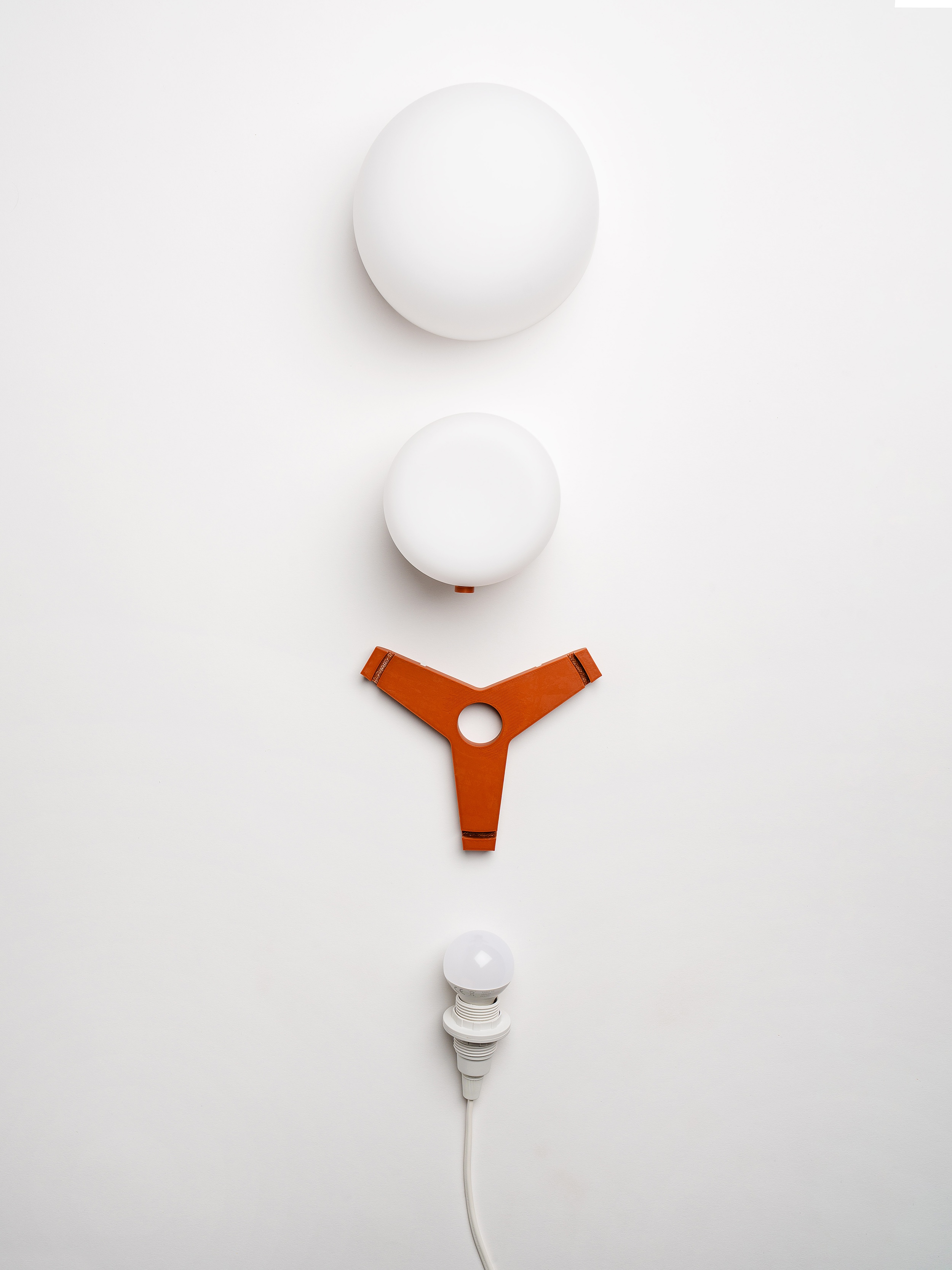 → All ProjectsMellow is a table lamp with a minimalist and poetic design, inspired by the soft and comforting shape of a candy. Made from two glass components held together by a central star-shaped piece that houses the light bulb, Mellow combines structural simplicity with visual delicacy. The lamp’s form is reduced to its essence — soft, rounded volumes that gently diffuse the light through satin-finished glass. The central star-shaped connector plays a dual role: both functional and aesthetic. It keeps the glass parts securely in place while allowing for an easy assembly, emphasizing the lamp’s simple yet clever construction.