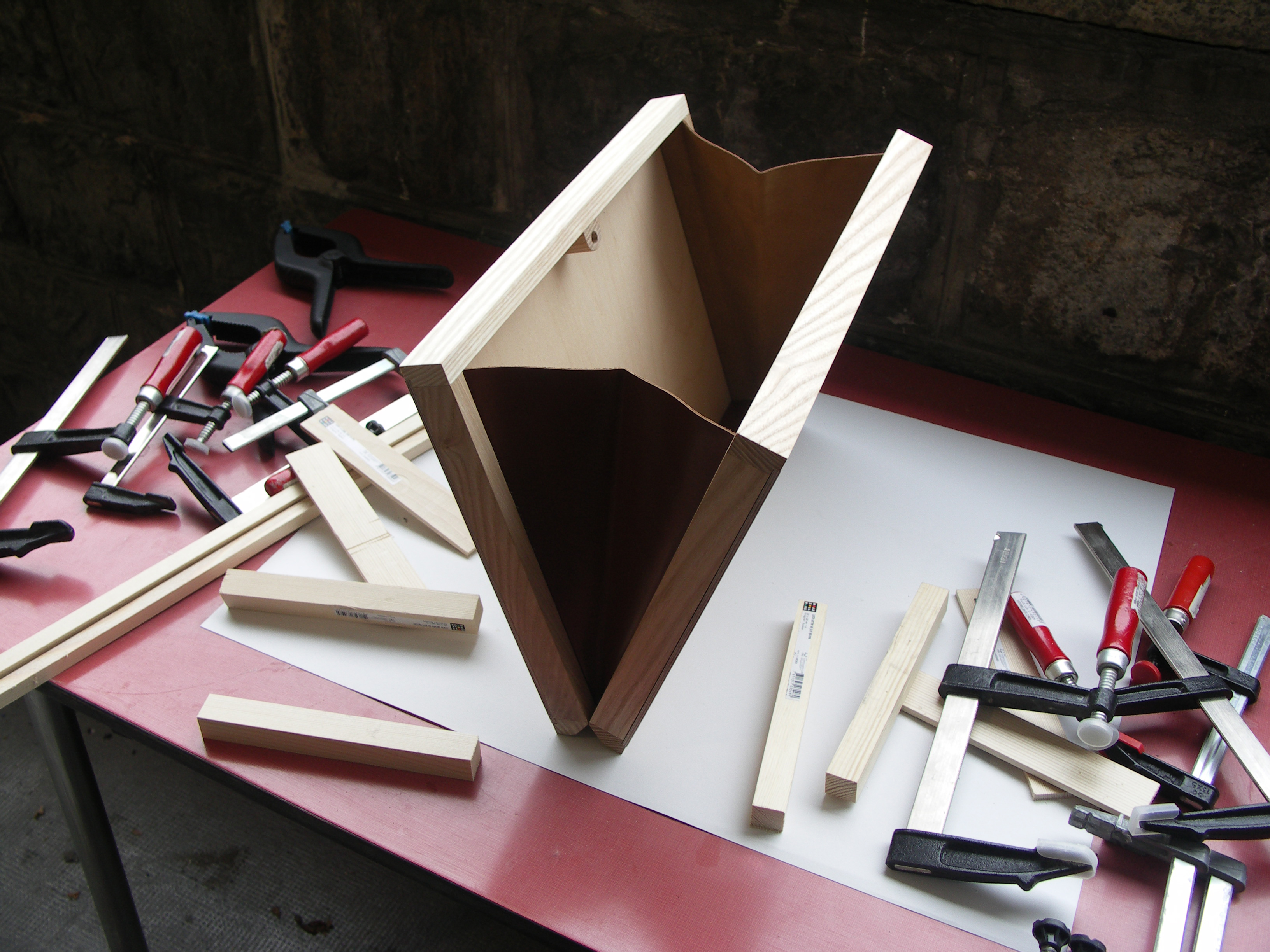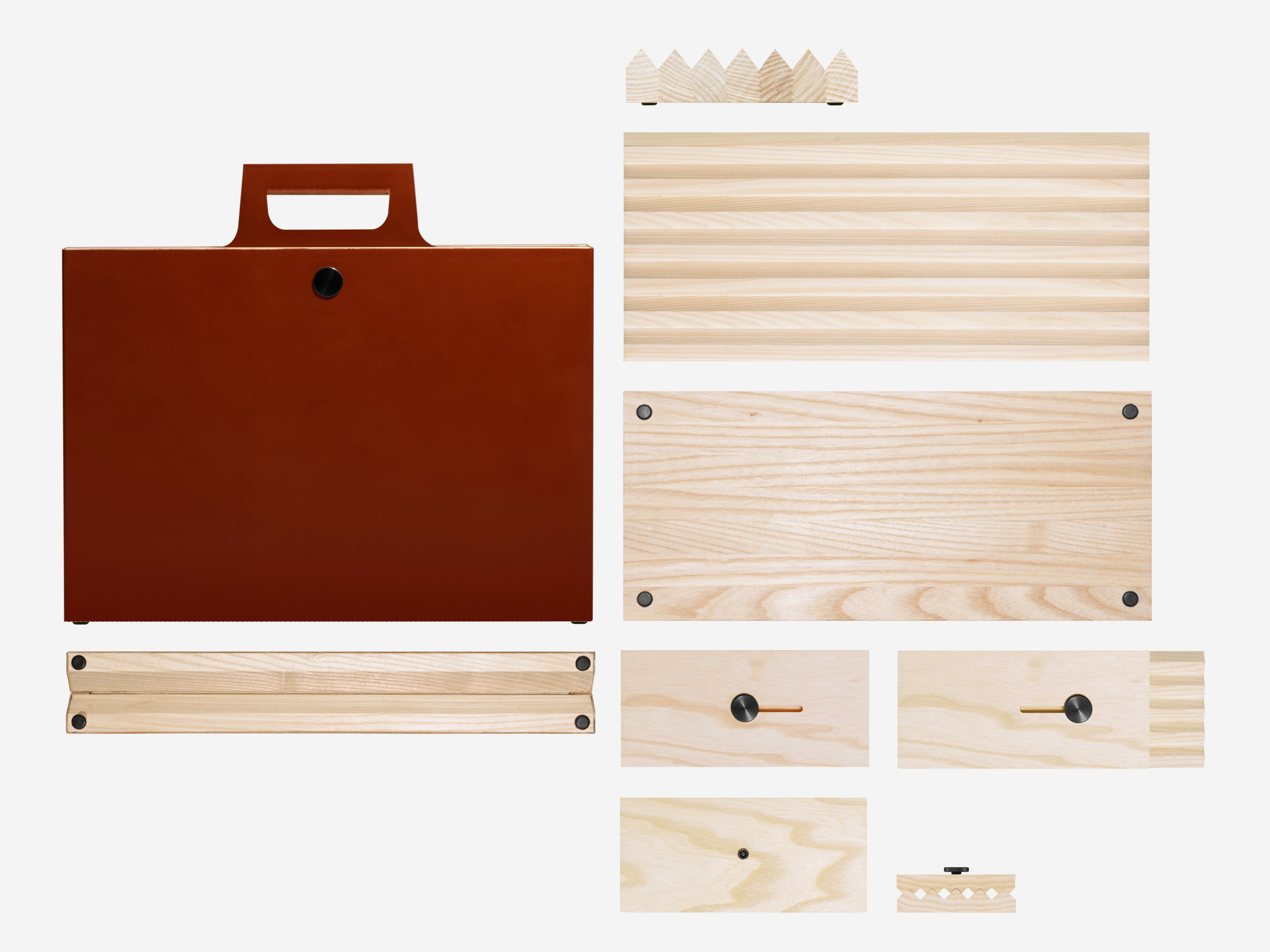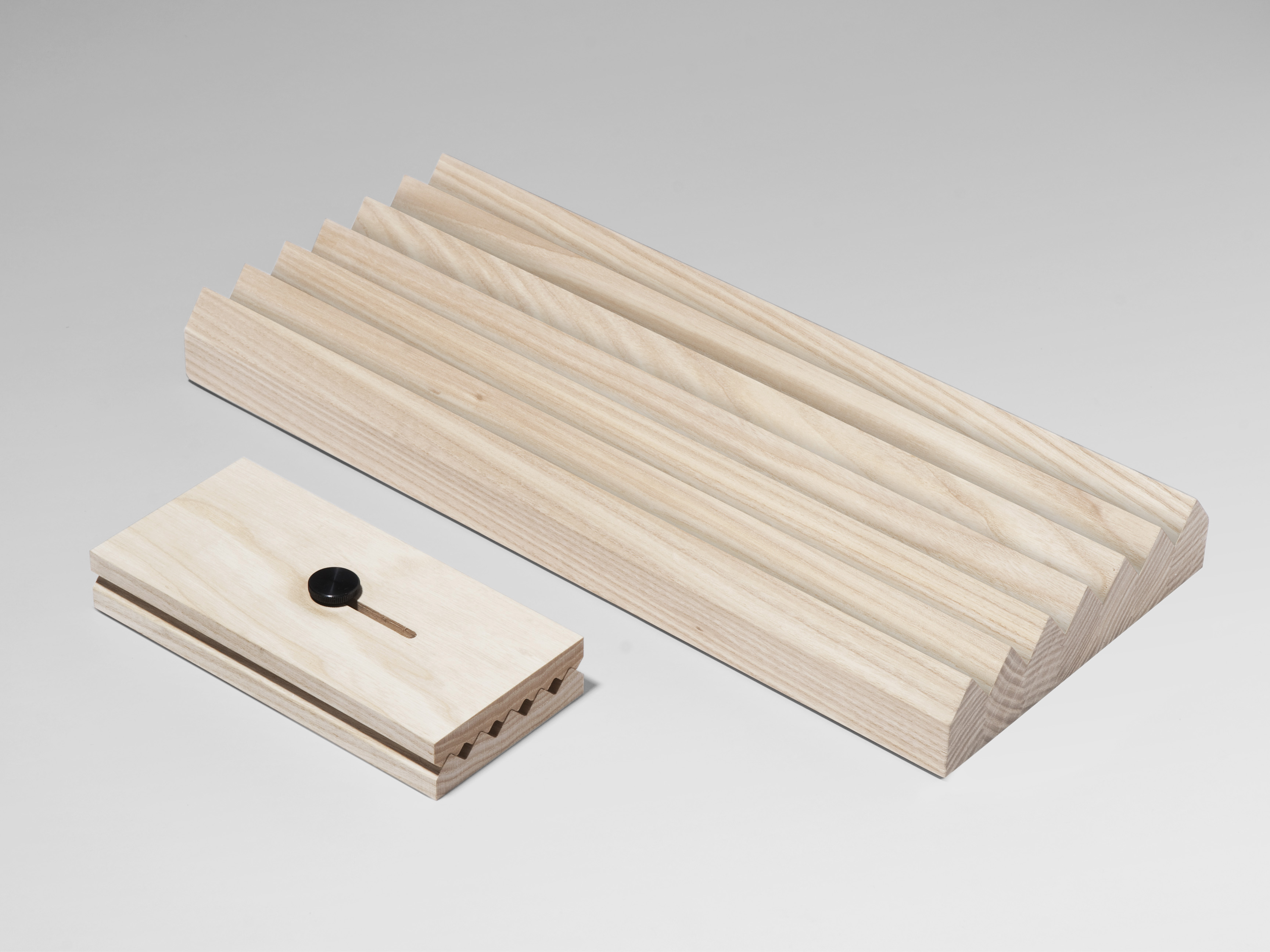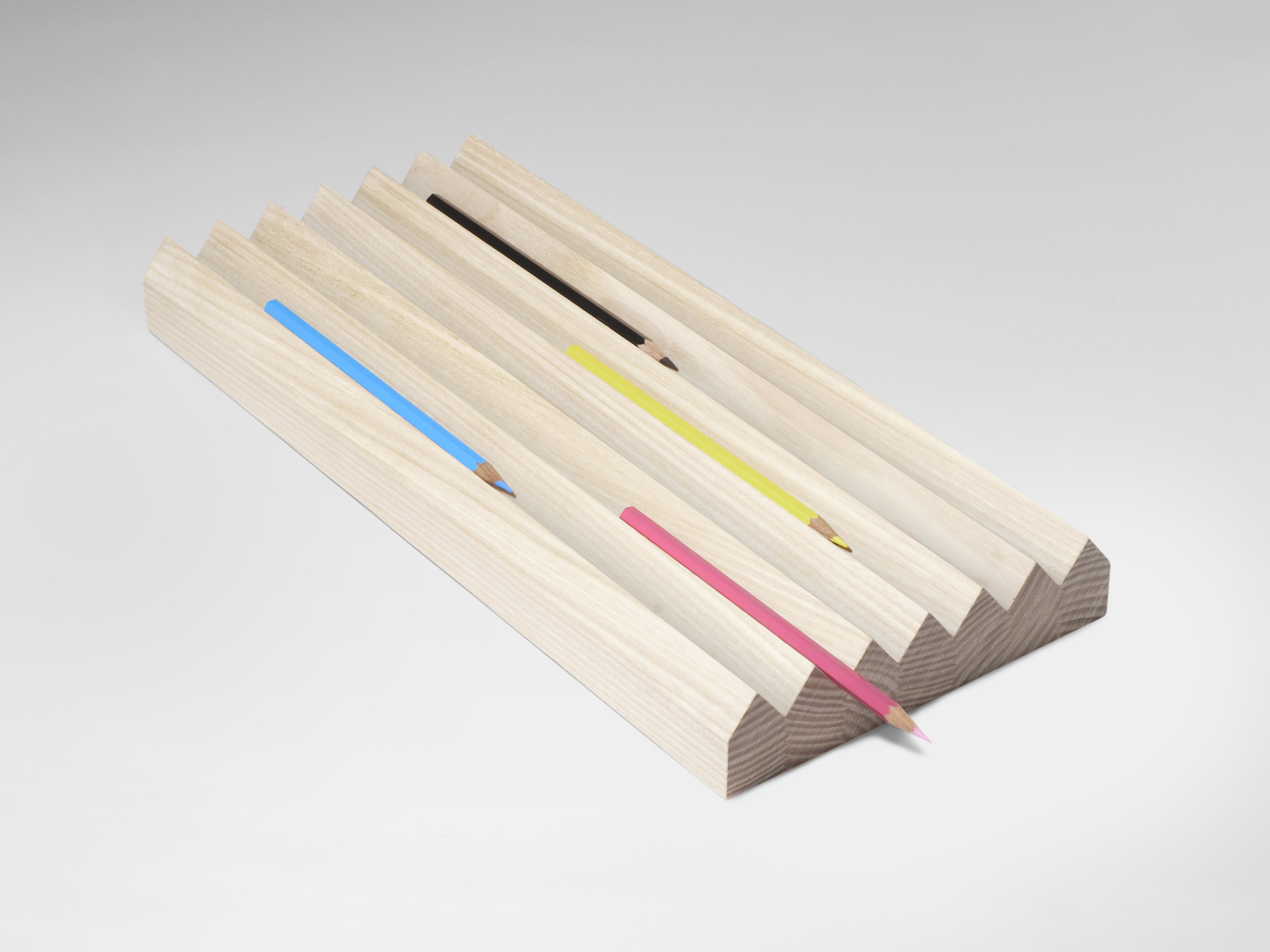 → All ProjectsThe monster collection contains a case for 4 pencils, a wooden block for storing writing utensils & a A3 leather bag. This collection was named monster after our chance encounter with avertical shaper in the woodworking workshop of Joseph Miele. After many weeks of mutual observation, communication was finaly established. Each one of our objects is sculpted by each of its jaws. We have rendered the shape of its teeths to enclose pencils - “stuffmonster”. We have rendered the strenght of its teeths with a black screw to lock in some pencils - “penmonster”. We have rendered its skin to make a bag - “papermonster”. Collaboration with Camille Blin.