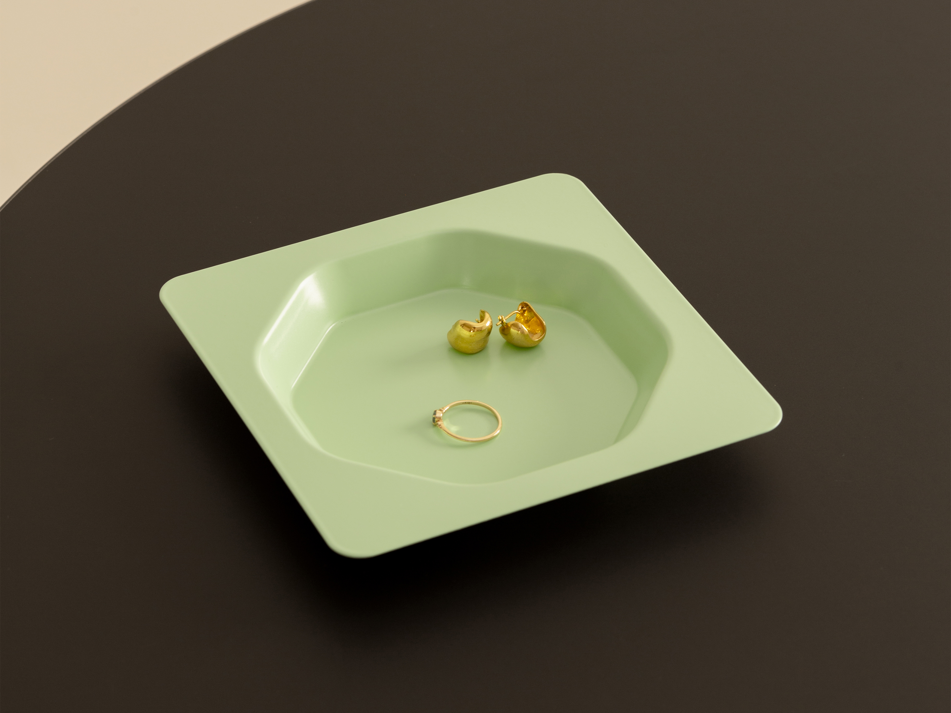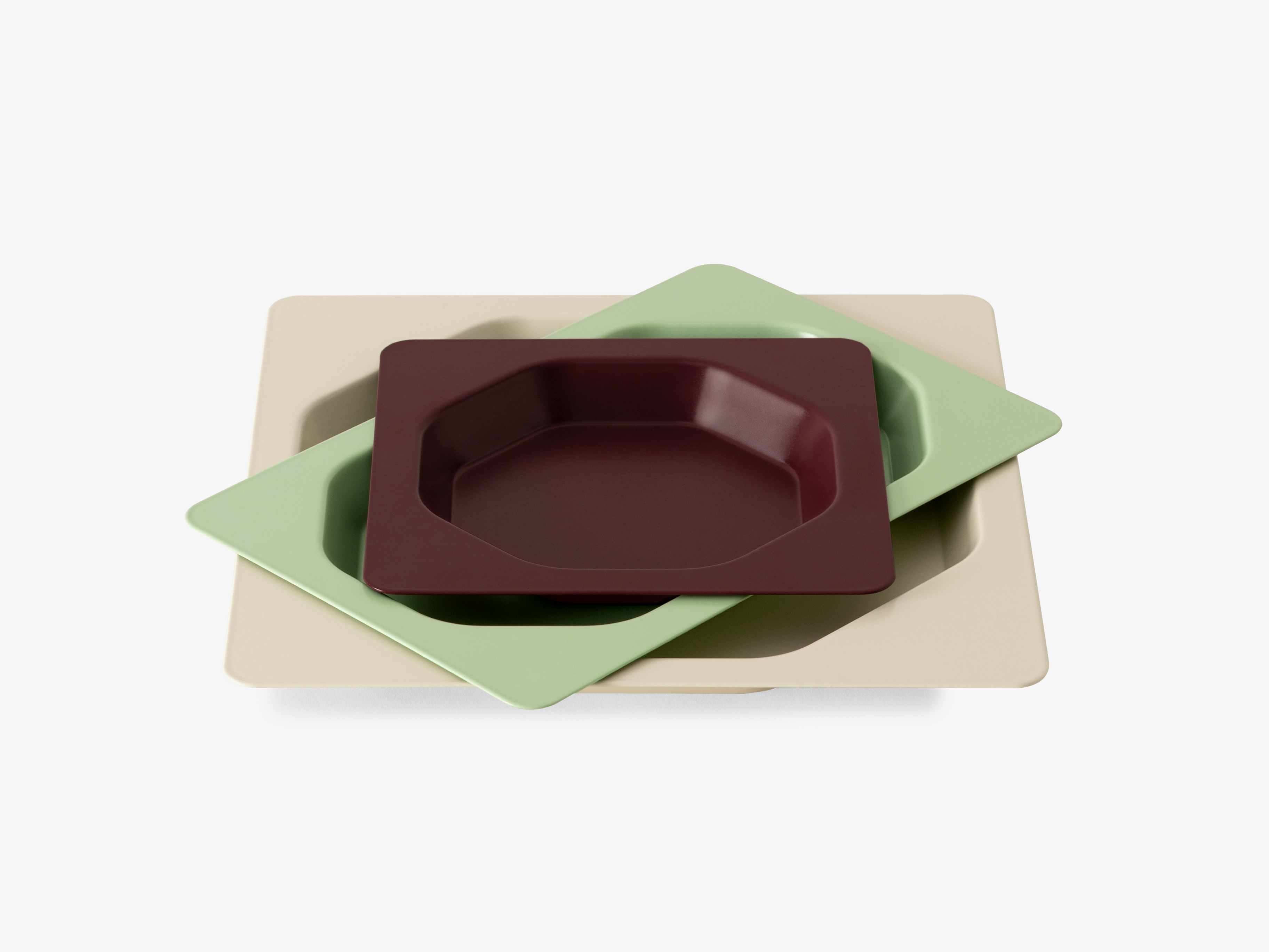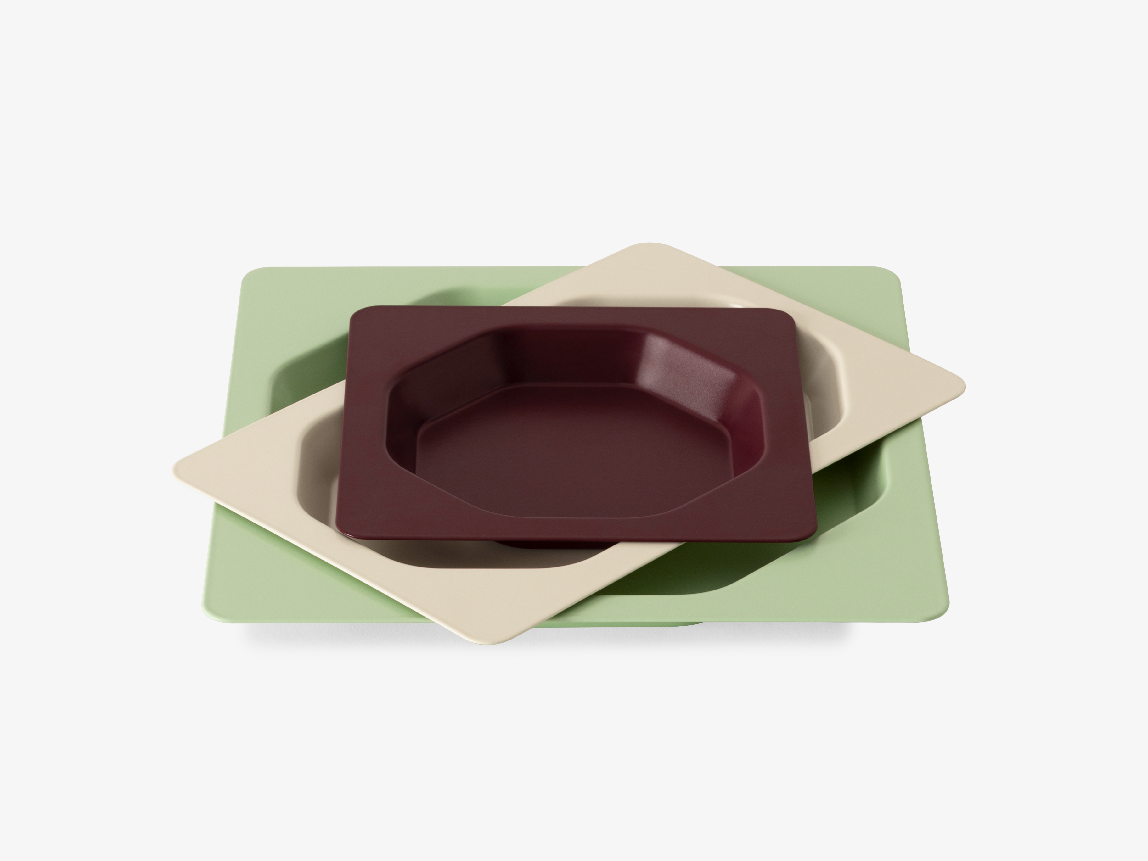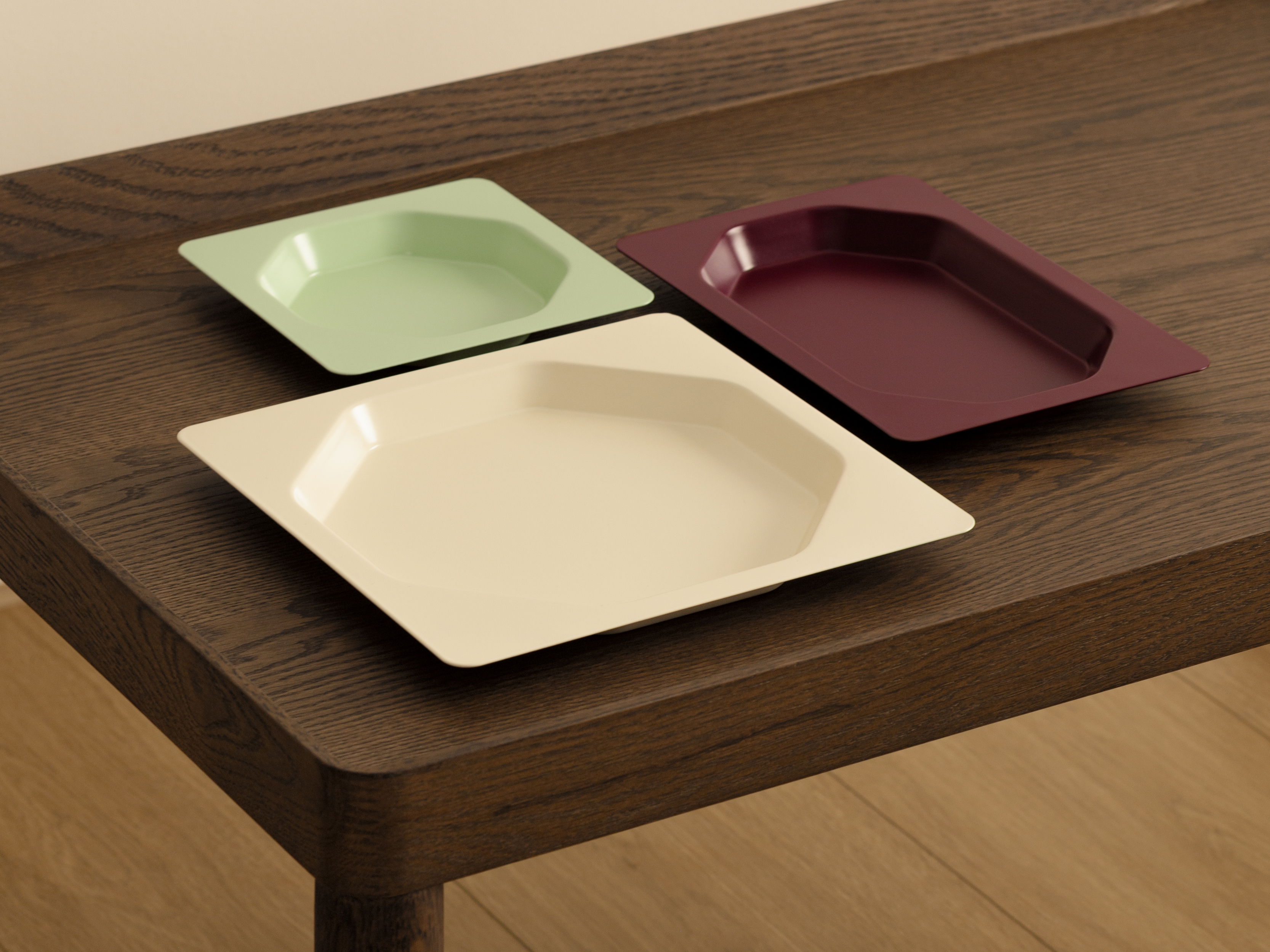→ All ProjectsManufactured in stamped steel, PURU is a set of stackable trays inspired by classic pressed metal cafeteria plates. PURU’s lines combine graphic softness with geometric sobriety. Playful and handy, PURU stands for pond in Japanese, and comes in three powder coated colors and shapes, stackable from smallest to largest, rearrangeable as needed; whether on your desk, in the kitchen or on your bedside table.