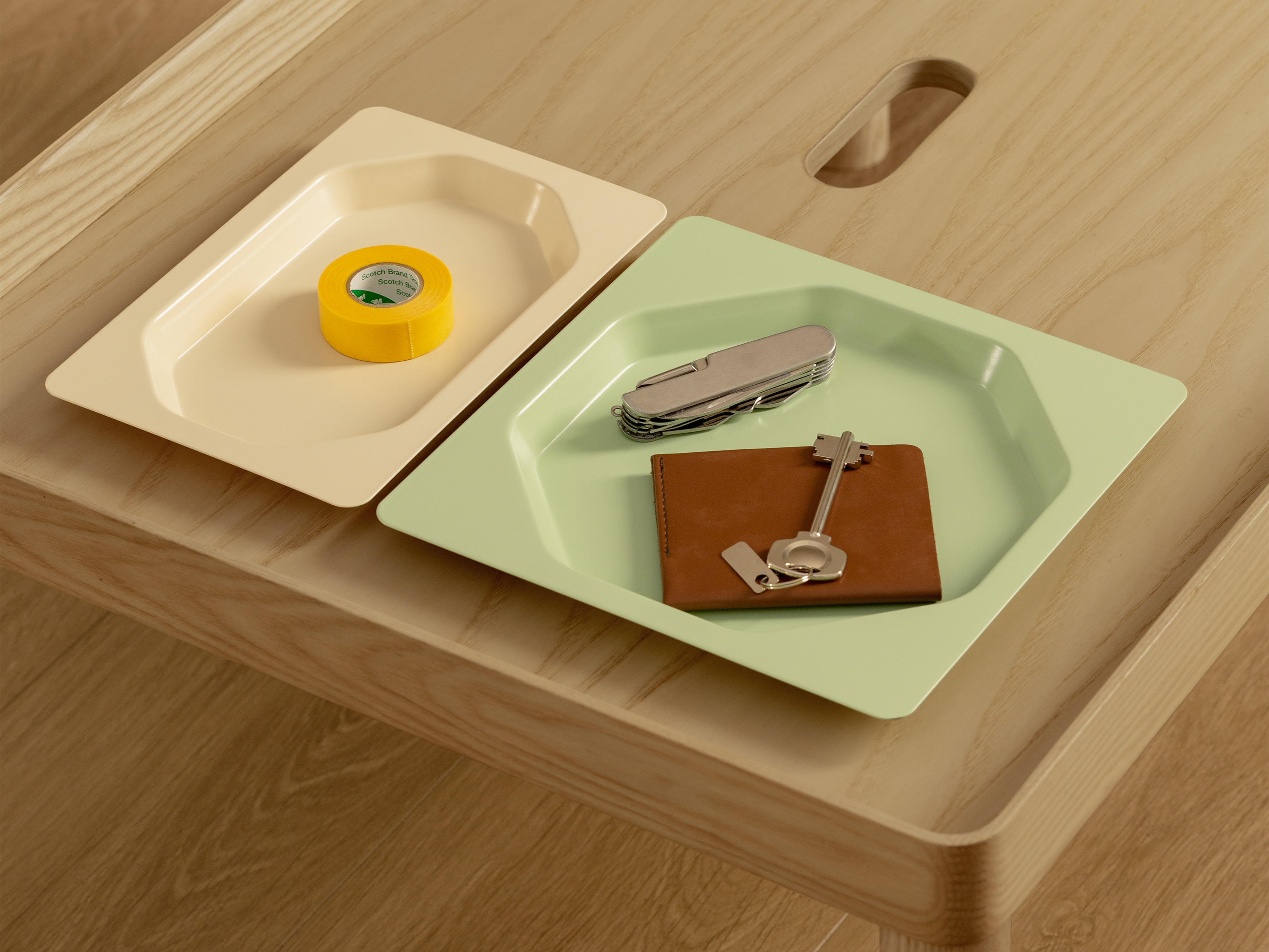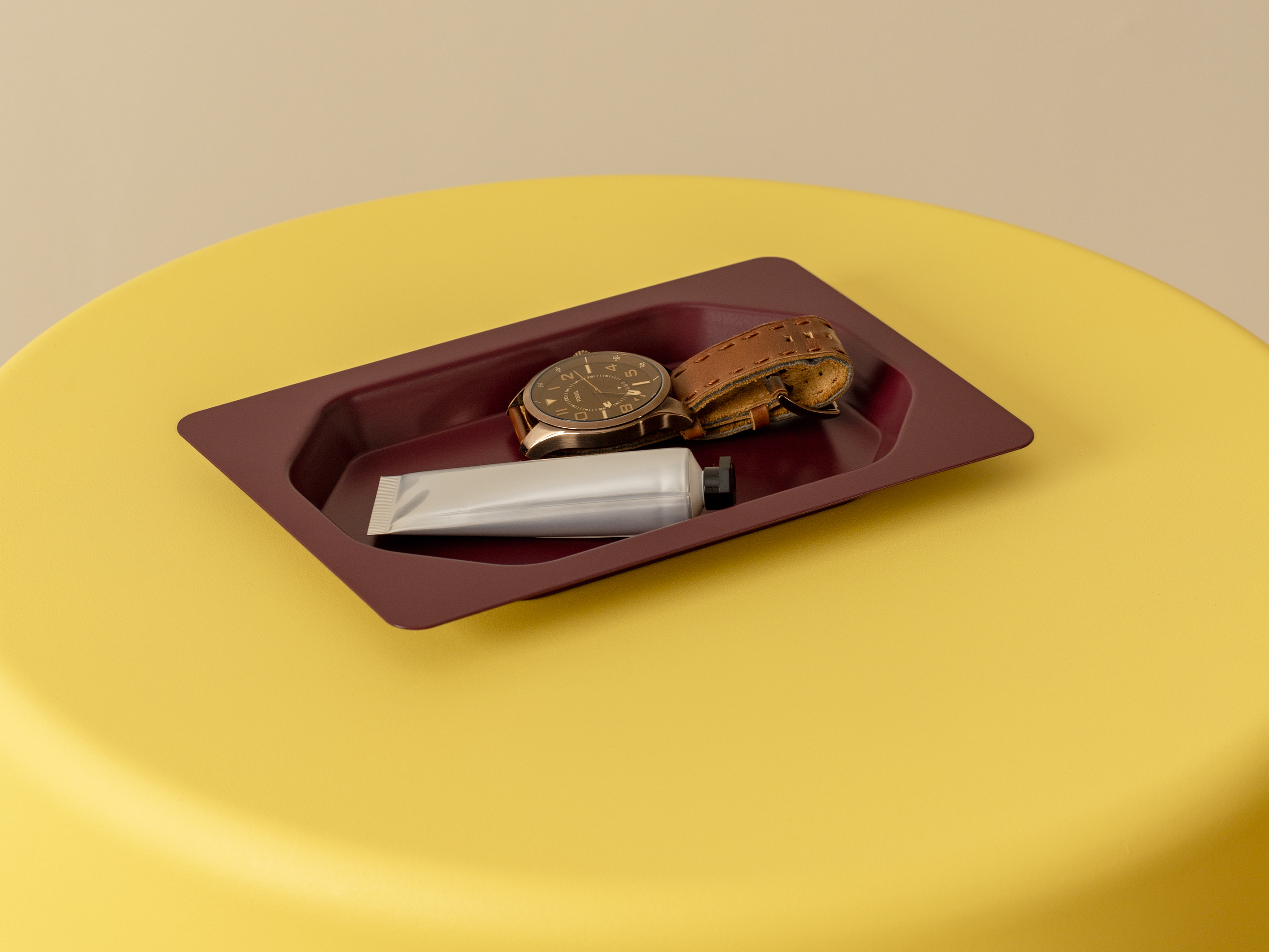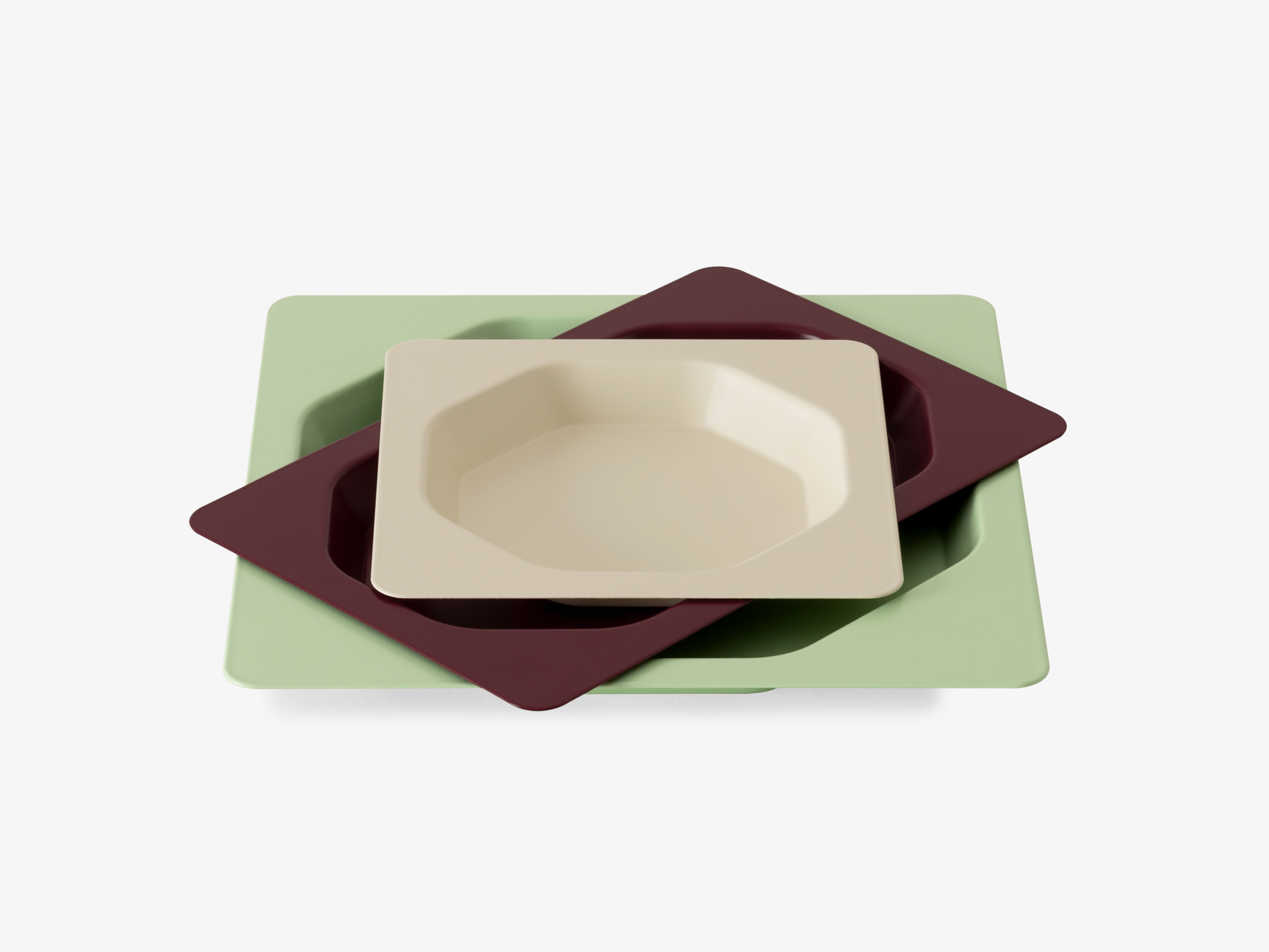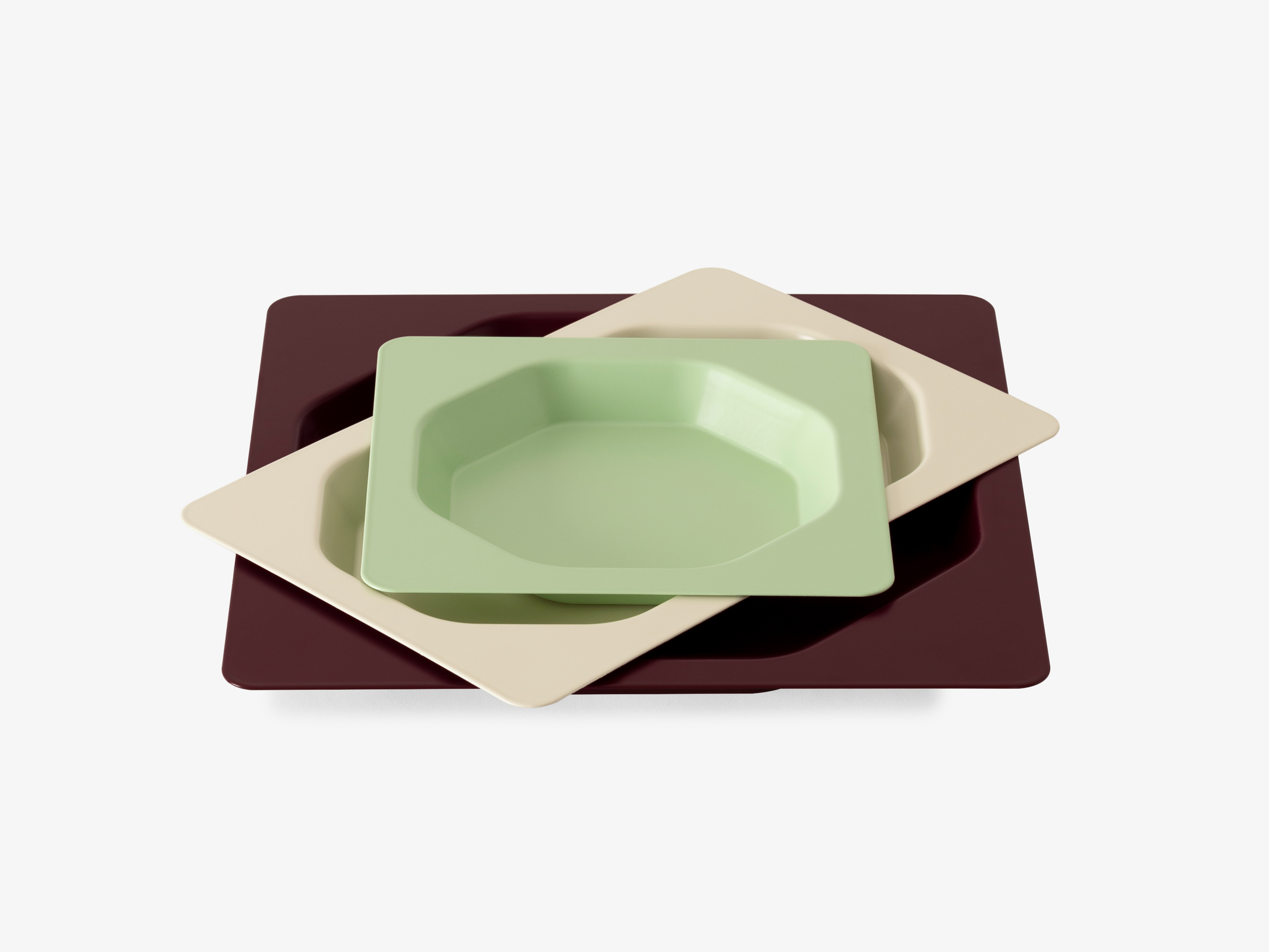 → All ProjectsManufactured in stamped steel, PURU is a set of stackable trays inspired by classic pressed metal cafeteria plates. PURU’s lines combine graphic softness with geometric sobriety. Playful and handy, PURU stands for pond in Japanese, and comes in three powder coated colors and shapes, stackable from smallest to largest, rearrangeable as needed; whether on your desk, in the kitchen or on your bedside table.