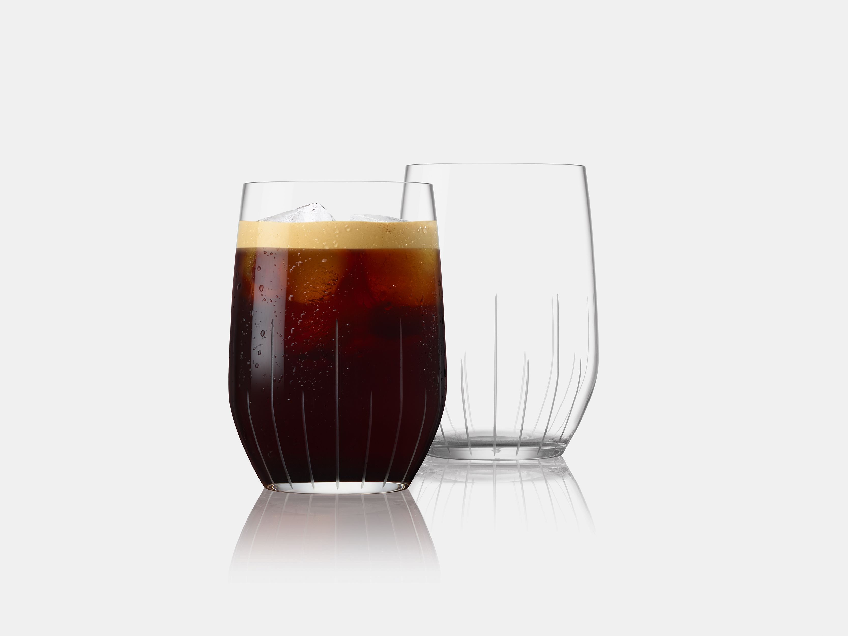 Reveal Cold Coffee → All Projects 1 / 8 Zoom Decorated crystal tasting glass designed for Nespresso Cold coffee and manufactured by Riedel. Whether you like it half-full or to the brim, the glass (ca. 550ml) is designed to give space to your icy beverage.
