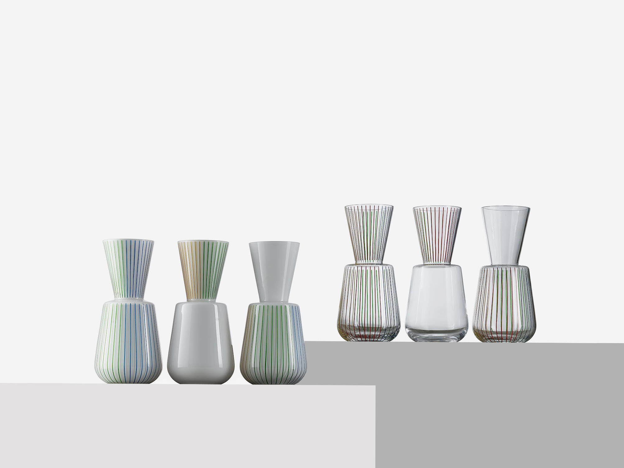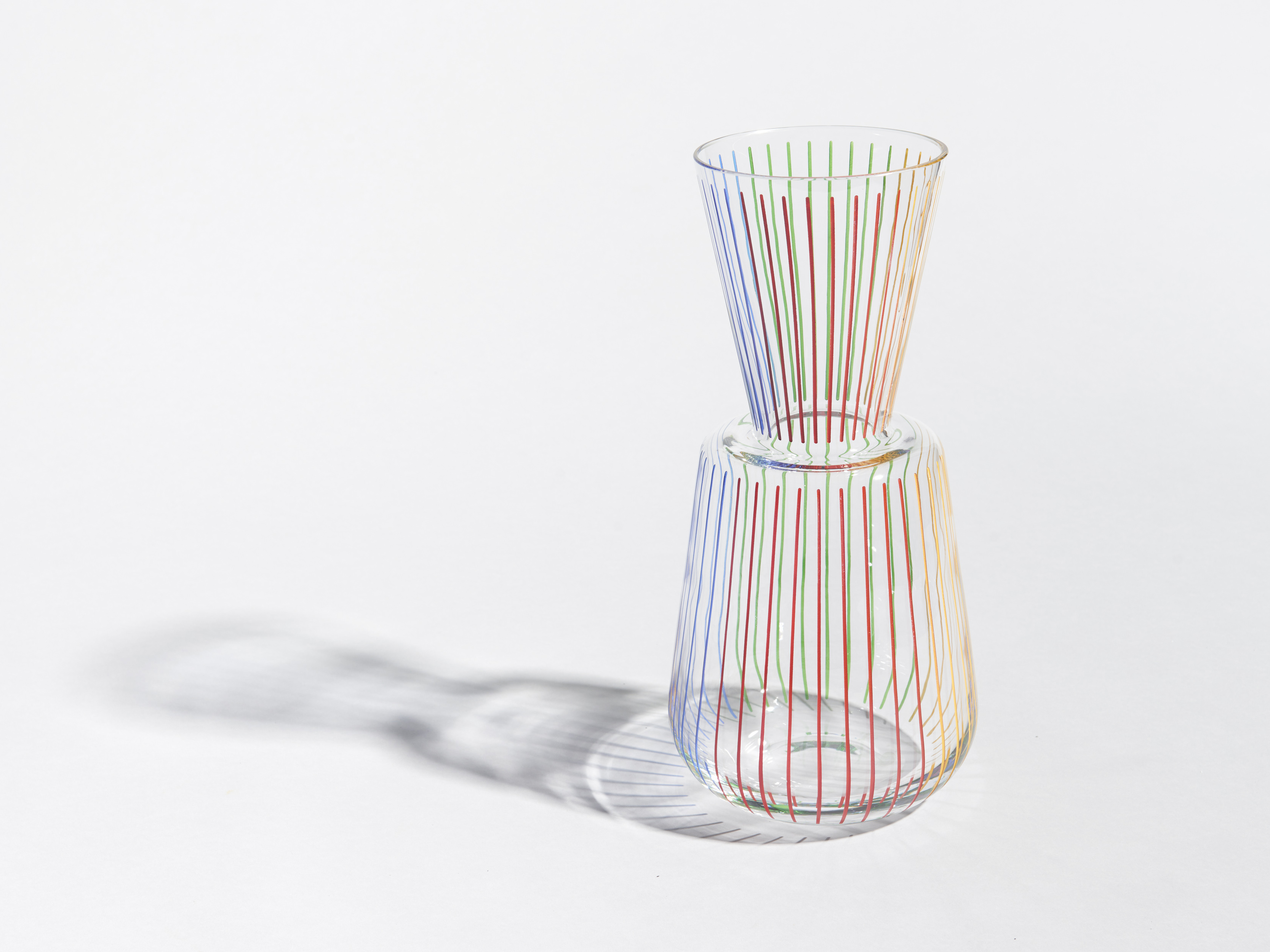 Spectrum → All Projects 1 / 3 Zoom Series of vases inspired by traditional turkish glassware shapes and decorated with colorful linear hand-painted patterns. This vase was designed for Pasabahce glass company as a part of the Omnia project.