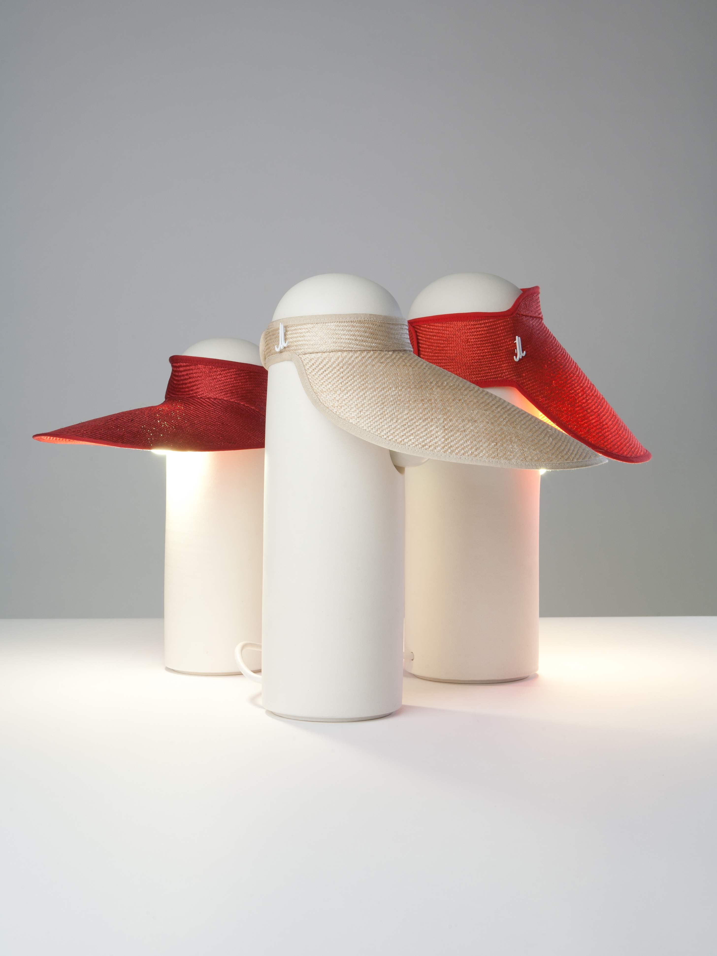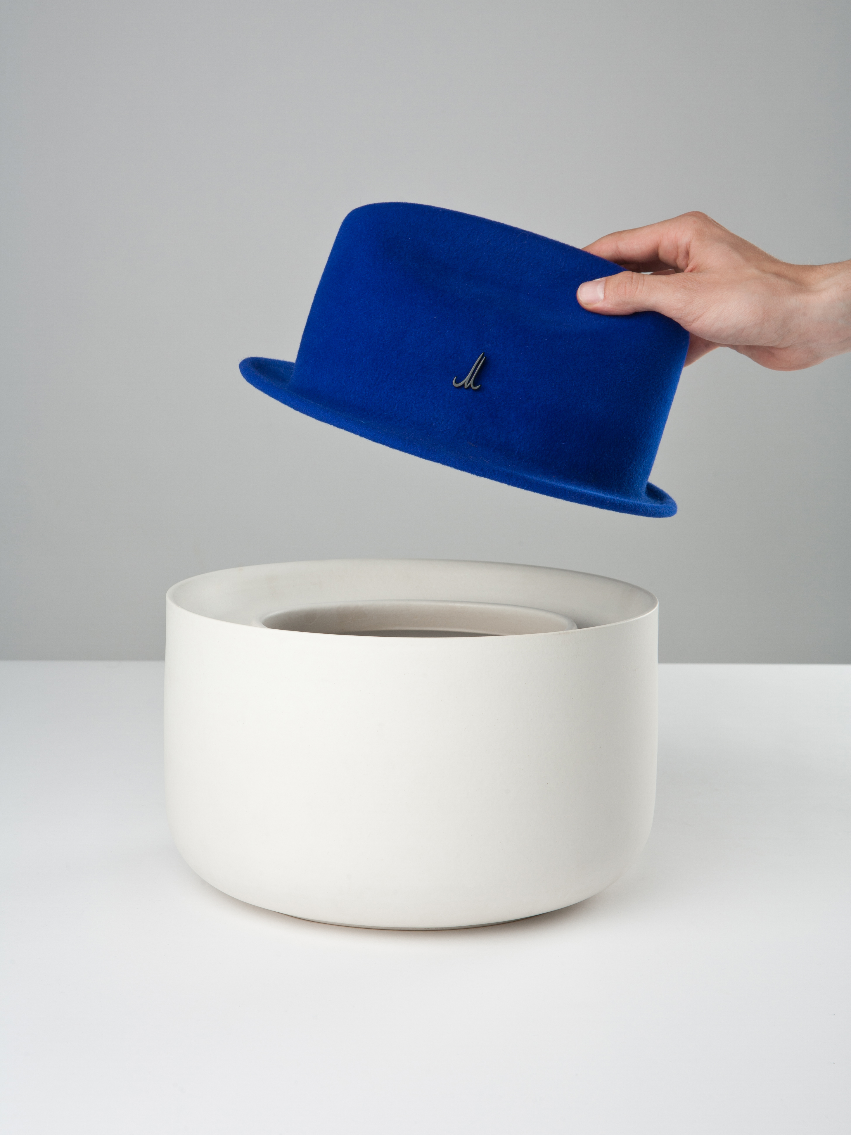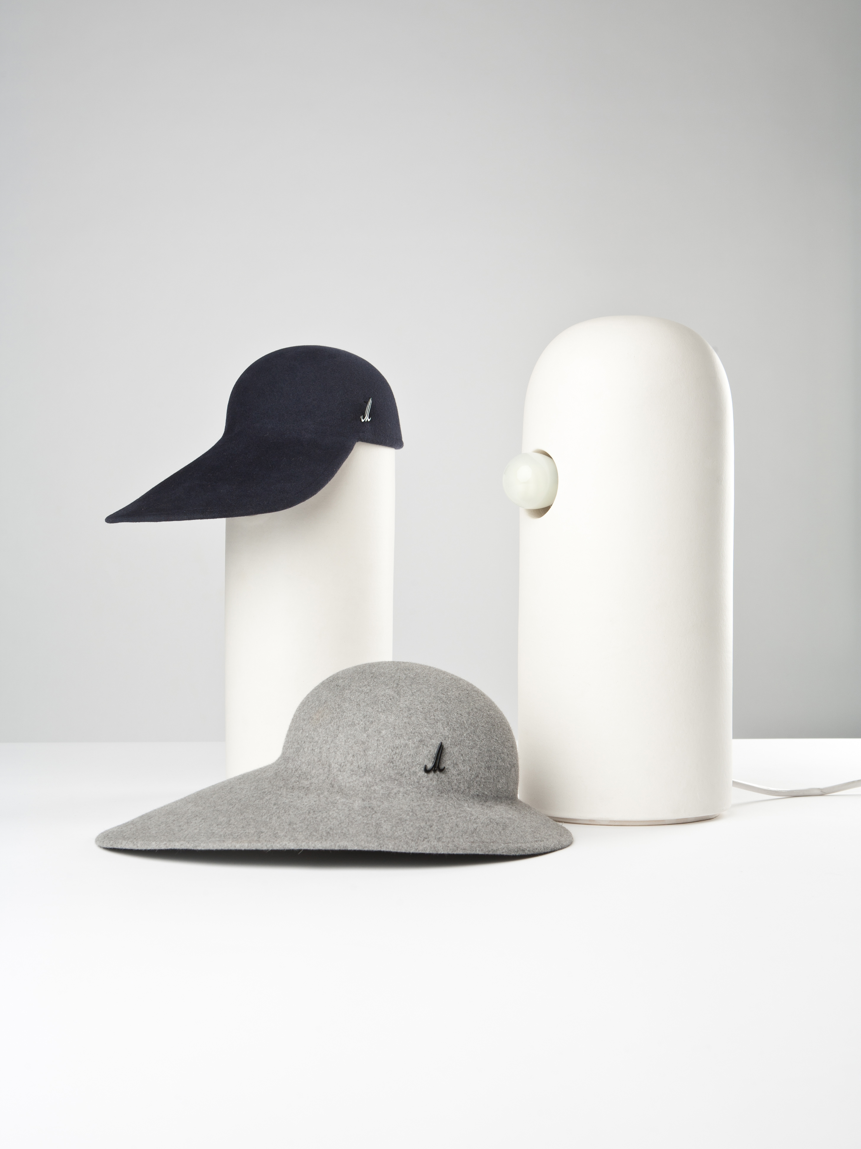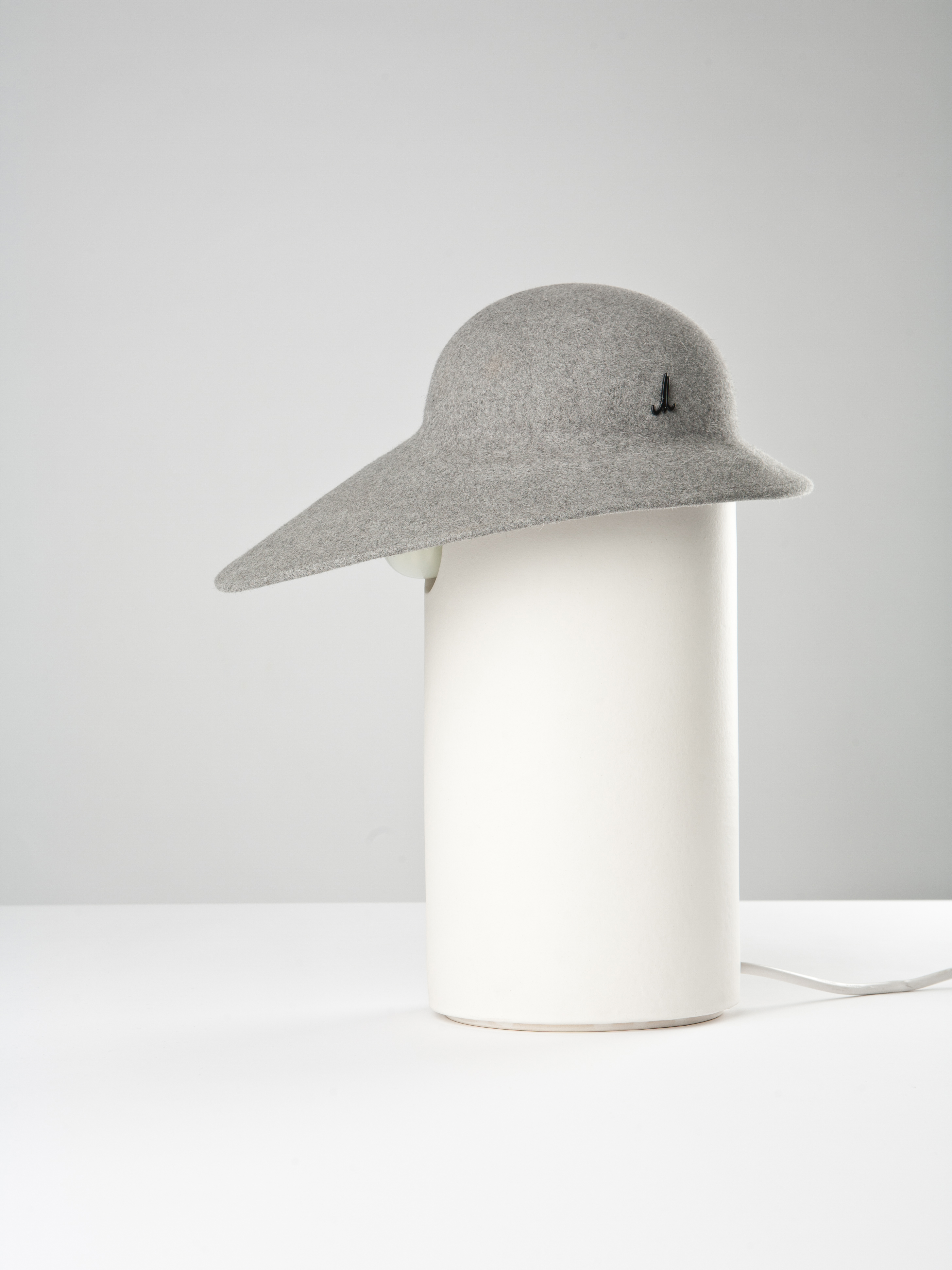 → All ProjectsThis project takes the image and the function of a simple hat out of it main context of the fashion accessory. Keeping the hat aesthetic and a small touch of humor, the protective function of the hat evolve to the lamp diffusers and covers for containers. In this project, the traditional hat & cap production processes are combined with a rigid ceramic. This series of “hats for objects” consist of 5 lamps and 1 bowl.