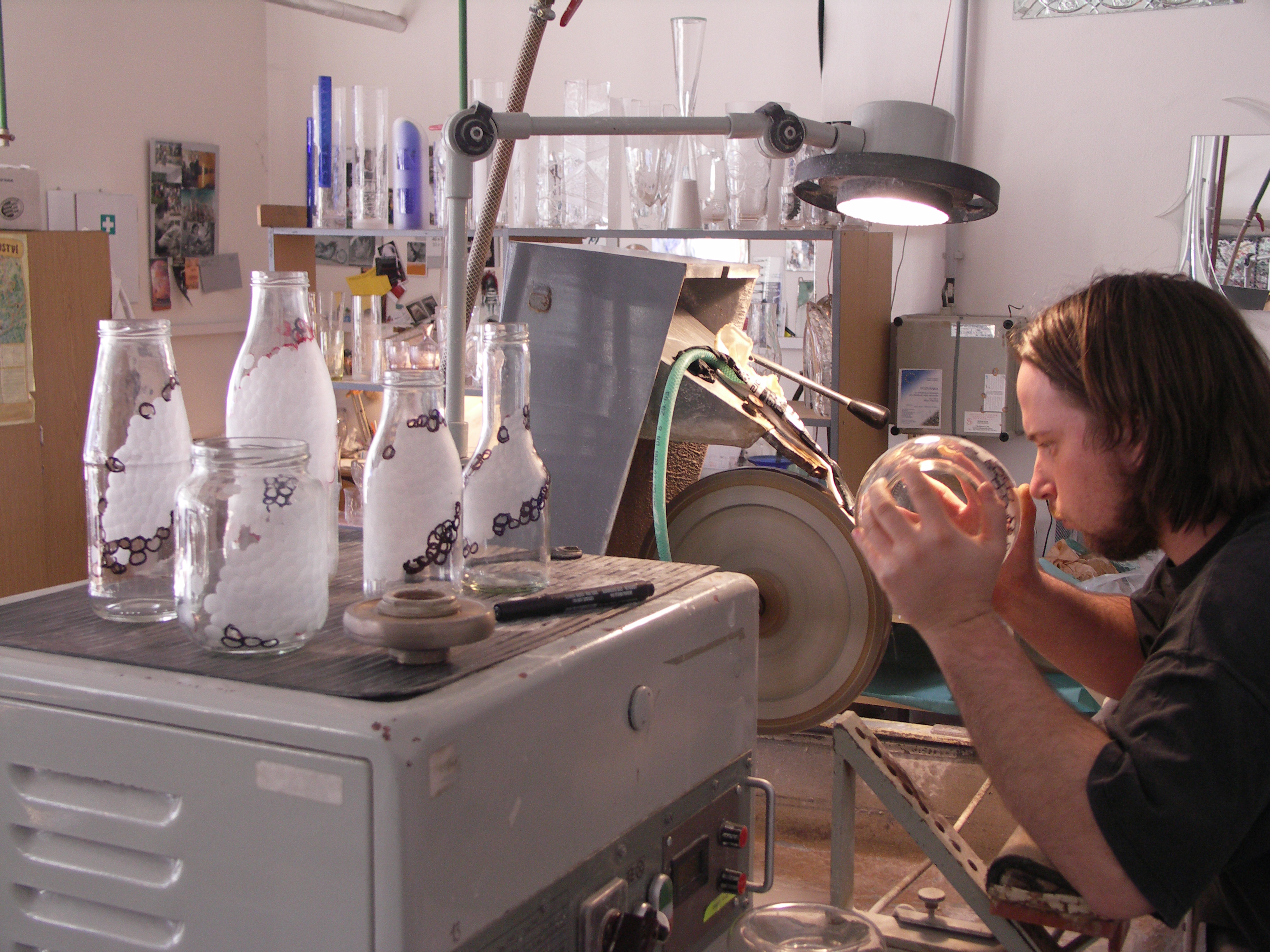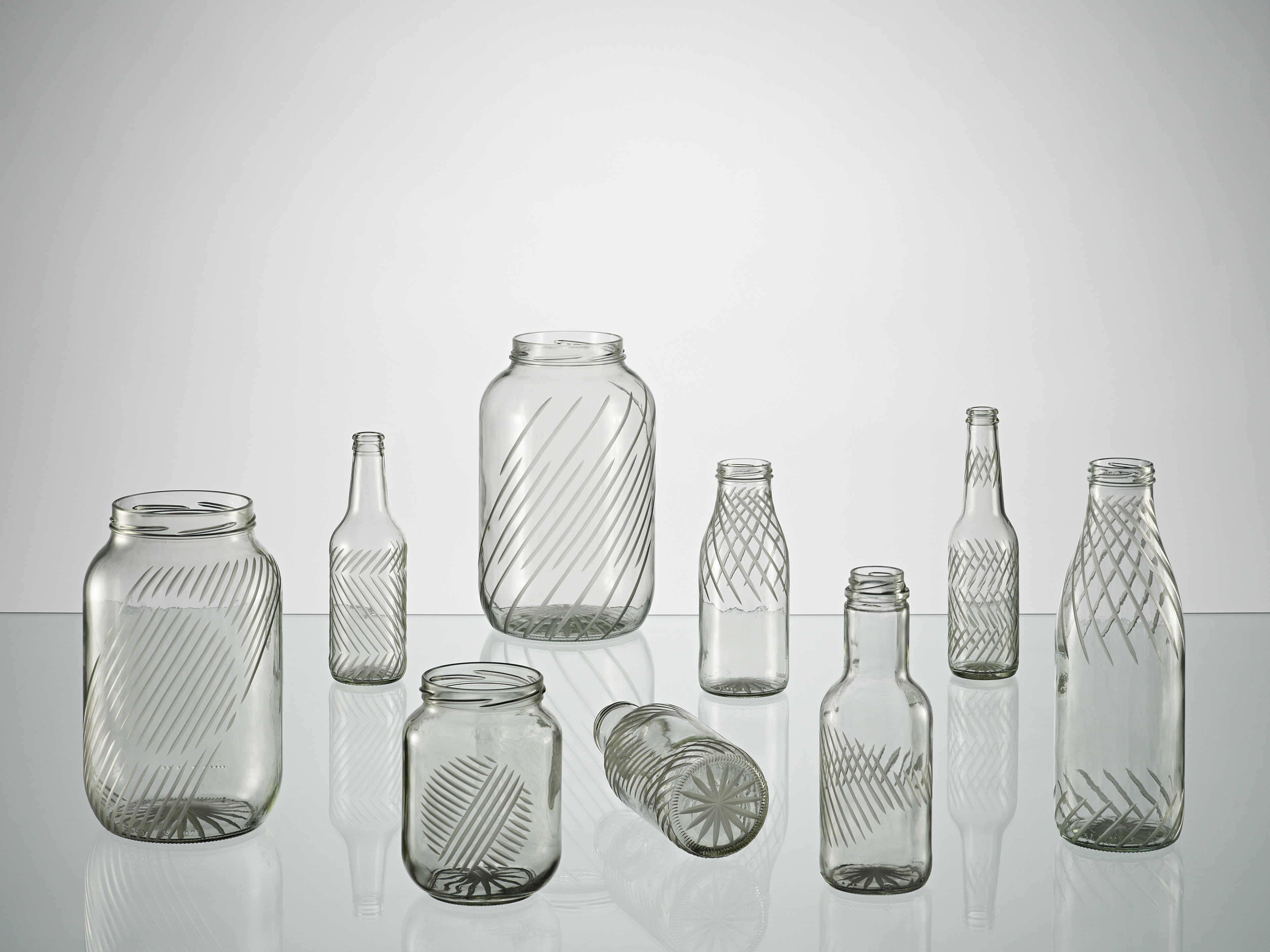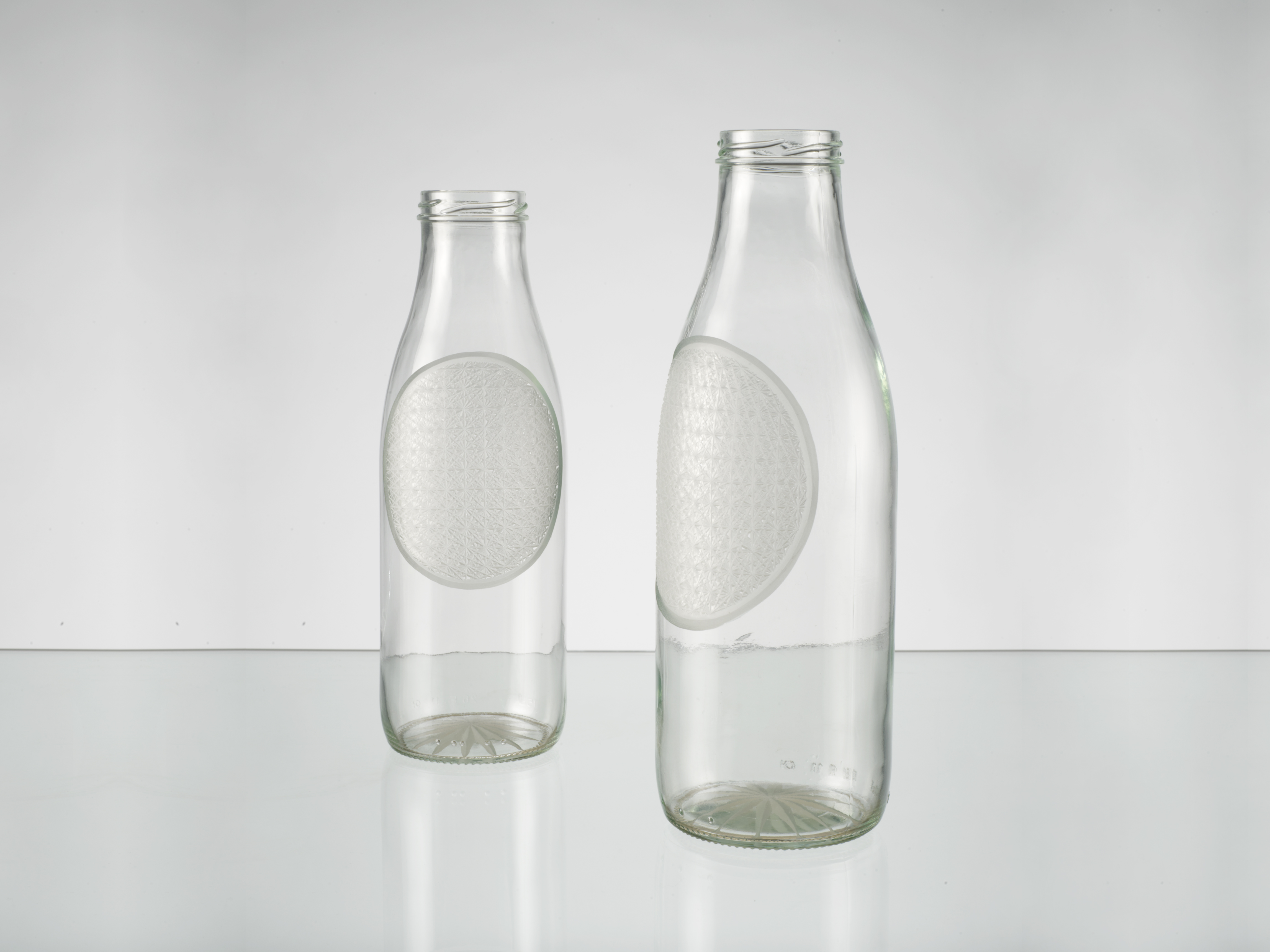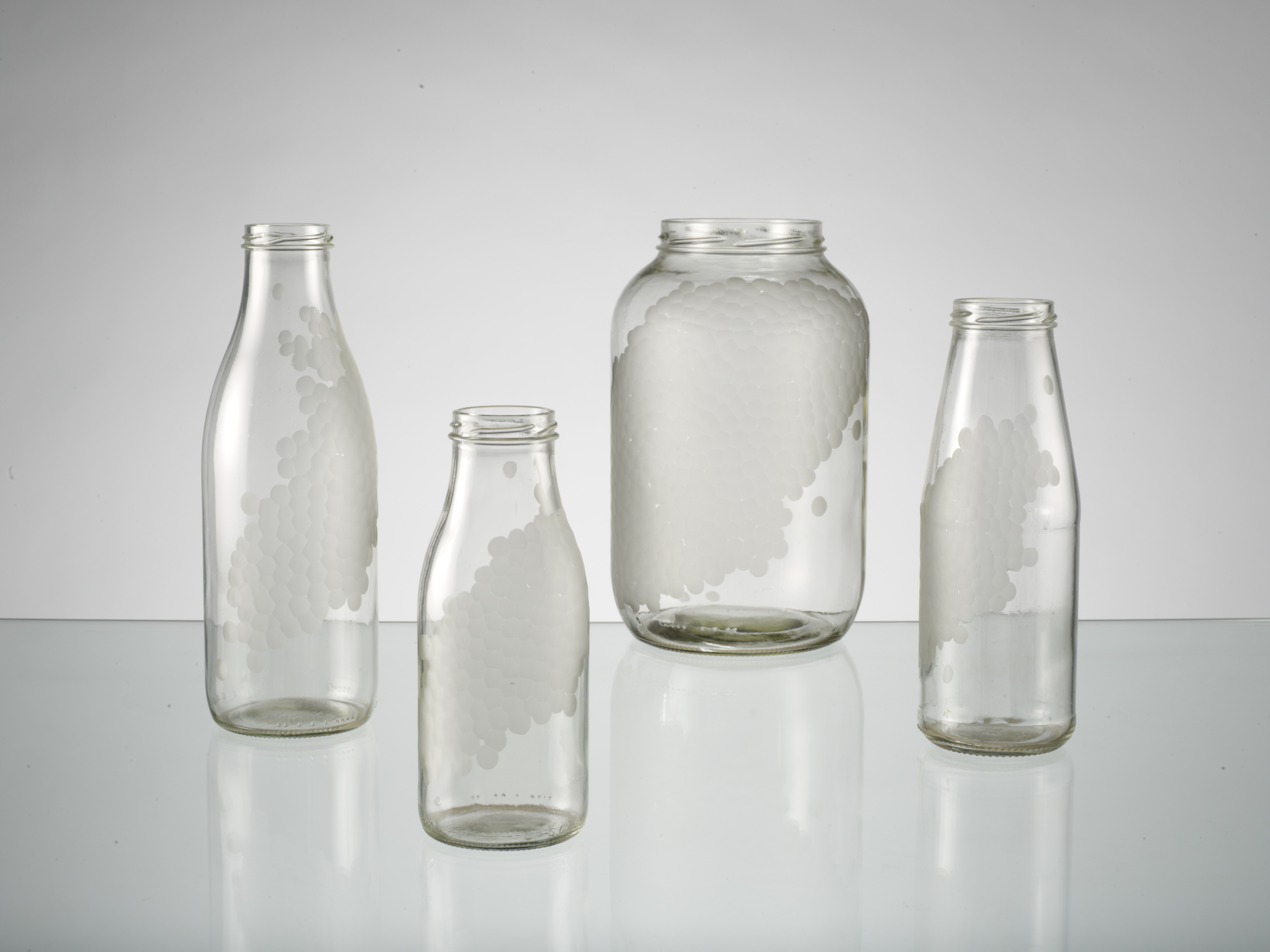 → All ProjectsDeveloped at Ecal, this project explore the traditional techniques usually used for crystal glass like cutting, engraving, gilding. I apply them on existing industrial glass packaging such as milk bottles or jars for tomato sauce. With this graphical “upgrade” I join together the industrial and the craft. I simply started by applying very traditional decorations that were later replaced by my personal “upgrades” inspired by the paper labels that takes part of this everyday objects and identify the product inside each bottle. This project was exhibited with Libby Sellers Gallery.